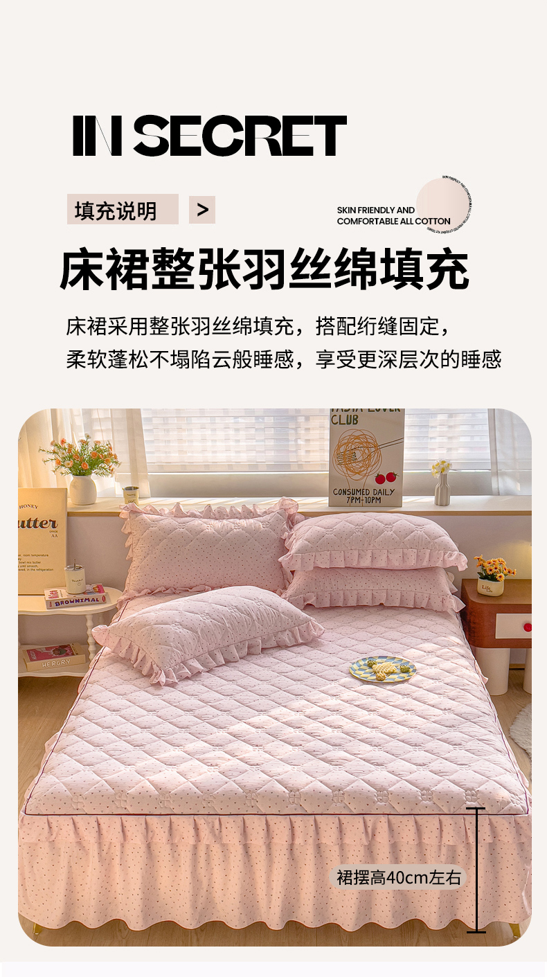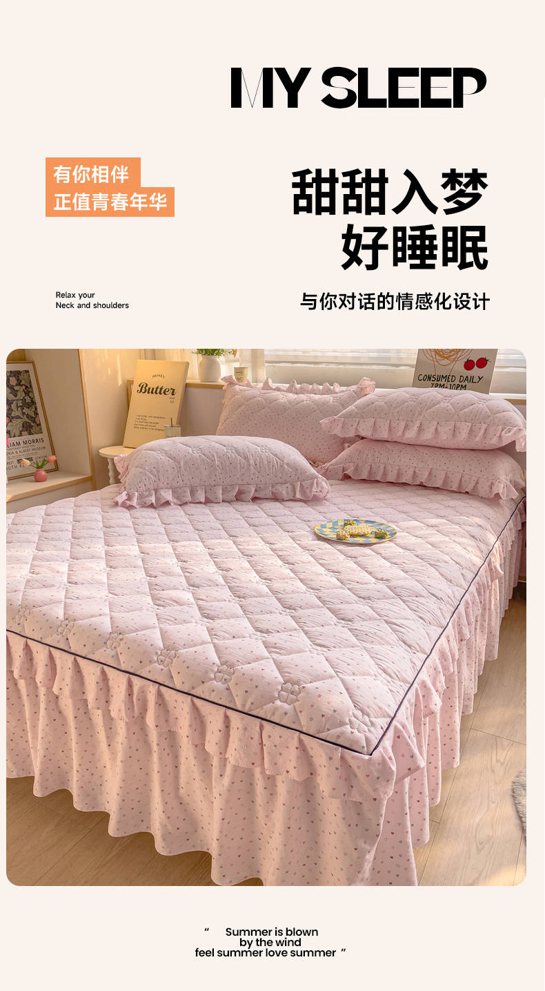 当前位置: 91家纺网 > 商品网购 > 床品套件 > 四件套 > 其它四件套 > 优家居工厂店 2026新款精仿棉夹棉床裙四件套水洗棉韩版公主风花边床裙被套直播外贸定制 丝丝心动