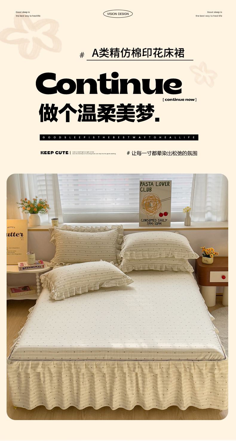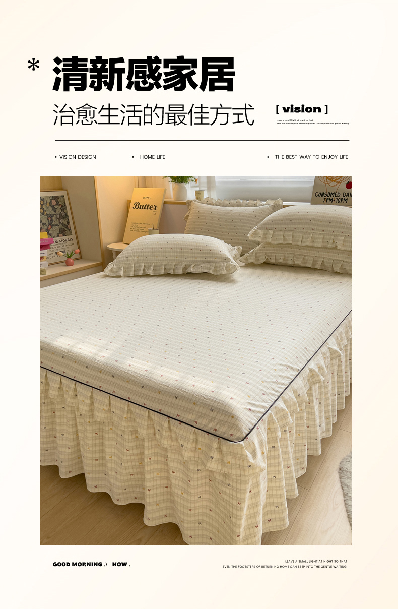 优家居工厂店 2026新款精仿棉床裙三件套水洗棉韩版公主风花边床裙直播外贸定制 北岛之恋