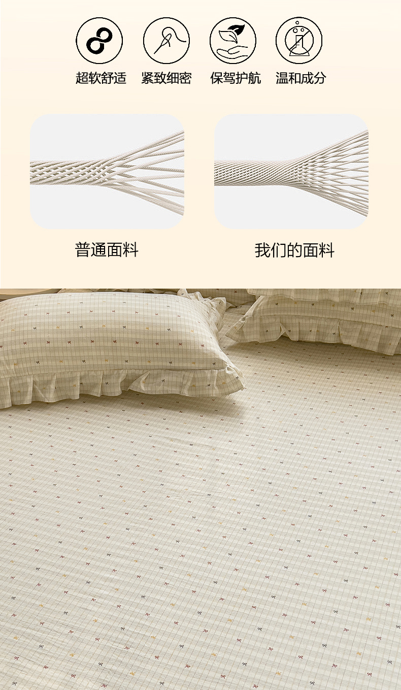 (总)优家居工厂店 2026新款A类超柔舒适水洗棉韩式花边四件套小清新格子纯色学生三件套,奶油-粉,奶油-粉蓝,奶油-黄,奶油-蓝,奶油-绿,奶油-紫