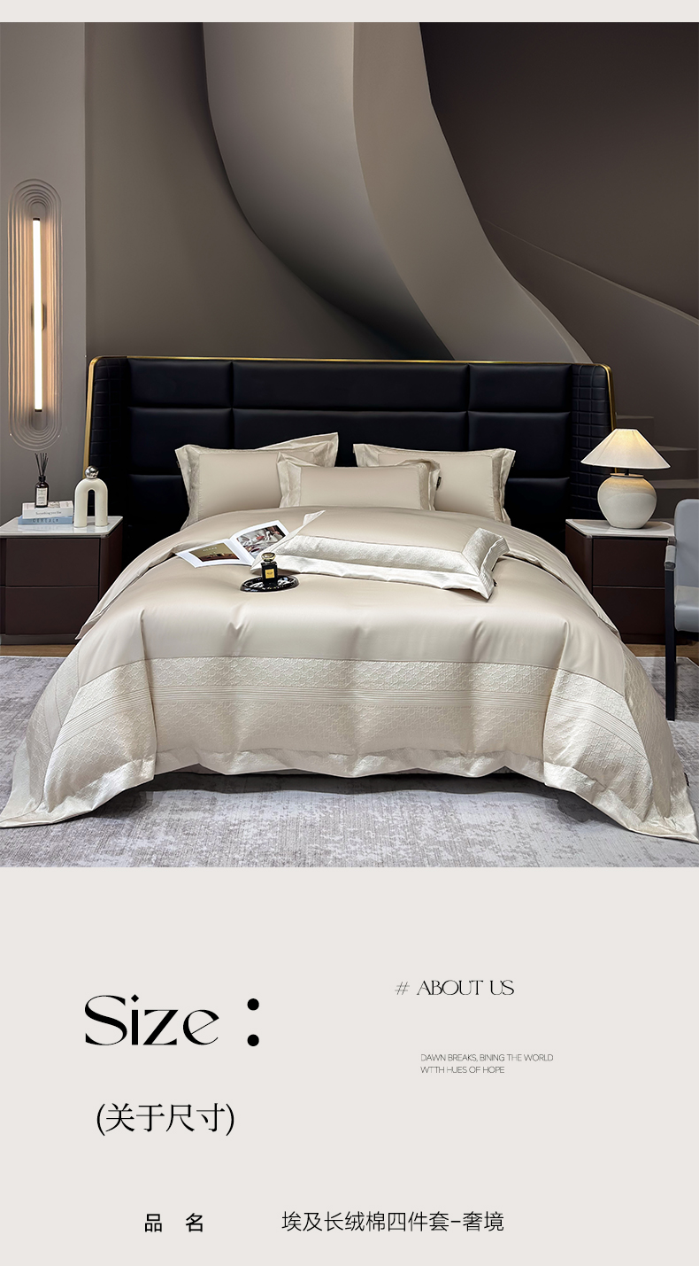 当前位置: 91家纺网 > 商品网购 > 床品套件 > 四件套 > 全棉普通四件套 > 莱势 2026新款100支全棉纯棉50x50s埃及长绒棉法式高精密金丝提花厚织四件套 奢境-香槟金