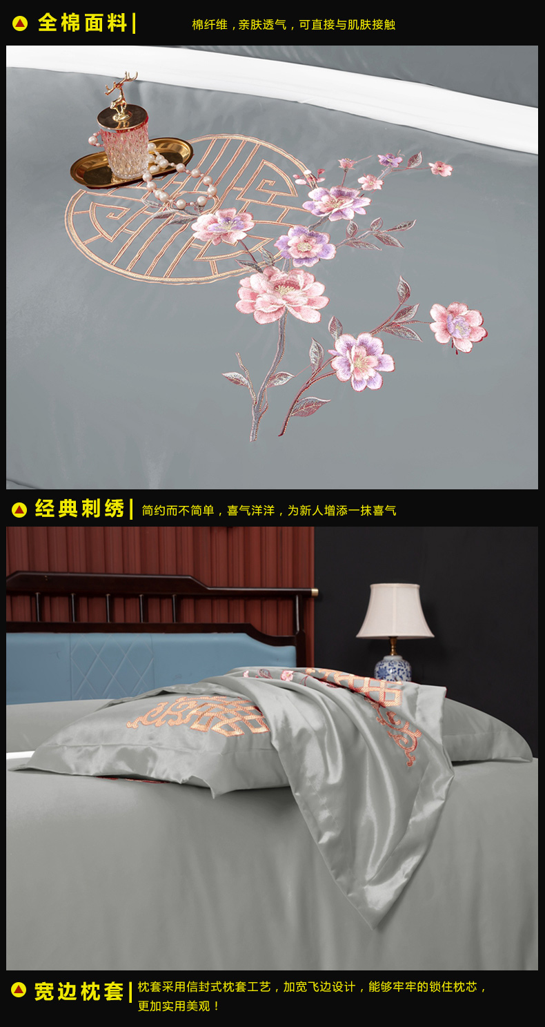 (总)慕她家纺 2026年磨毛亲肤棉婚庆四件套大红色刺绣结床上用品,恩恩爱爱,爱的约定,玫瑰情缘,双喜情缘,幸福如意,一见钟情,花好月圆,百年同心,天作之合,鸳鸯同心,米兰风情,天缘巧合,喜笑颜开,龙凤传情,盛世龙凤,幸福满园,盛世庄园 大红,盛世庄园 经典灰,盛世庄园 孔雀兰,盛世庄园 浪漫玉,盛世庄园 魅力紫,盛世庄园 雅豆沙,两心相悦,龙凤情缘