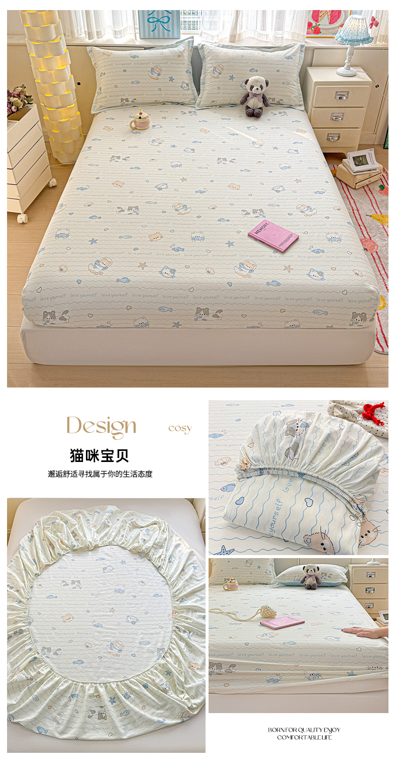 商品名称:卡普家居 2026新款全棉印花A版床笠 猫咪宝贝