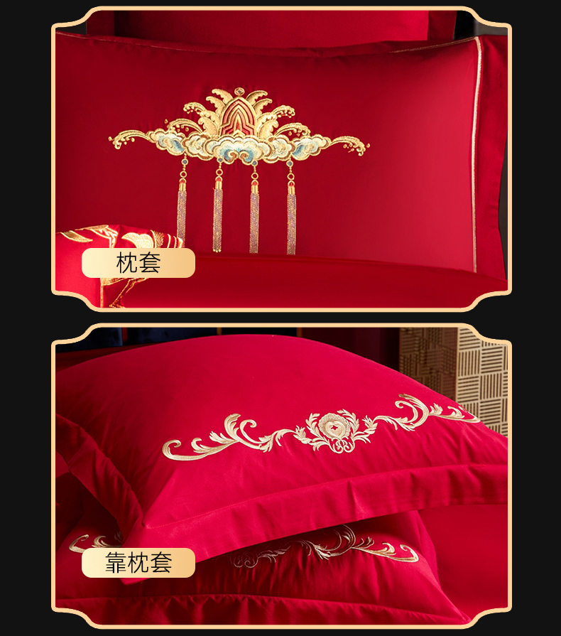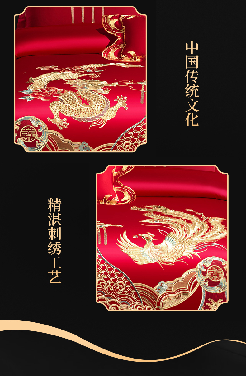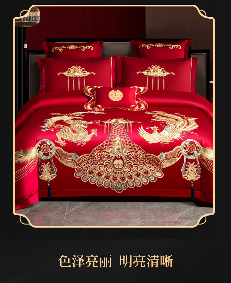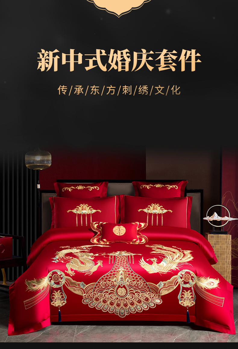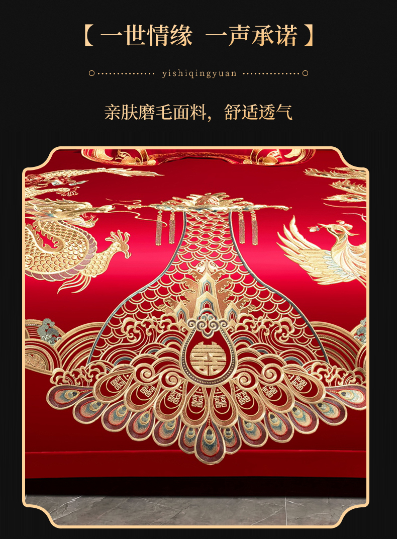 当前位置: 91家纺网 > 商品网购 > 床品套件 > 四件套 > 婚庆四件套 > 慕她家纺 2026年磨毛亲肤棉婚庆四件套大红色刺绣结床上用品 秦晋龙凤