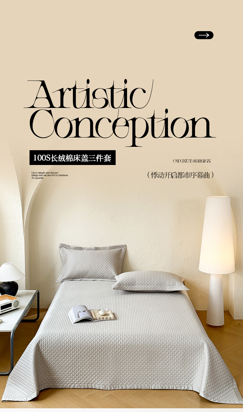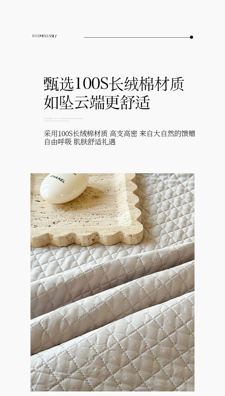 商品名称:法芙娜家纺 2026新款100S长绒棉床盖三件套 浅灰