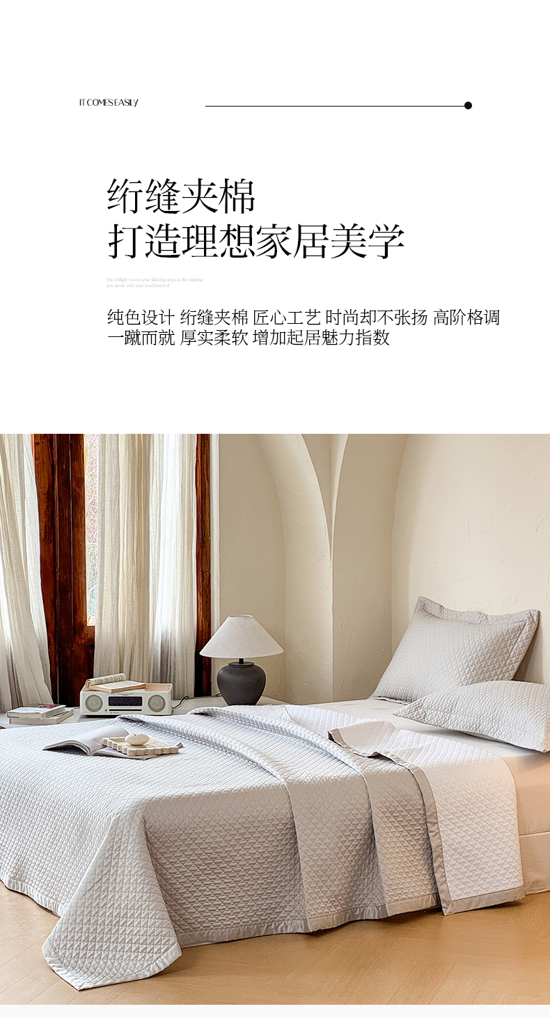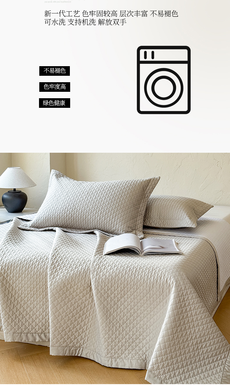 (总)法芙娜家纺 2026新款100S长绒棉床盖三件套,绿,米黄,浅粉,浅灰,深粉,深灰