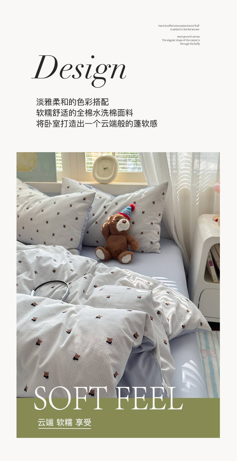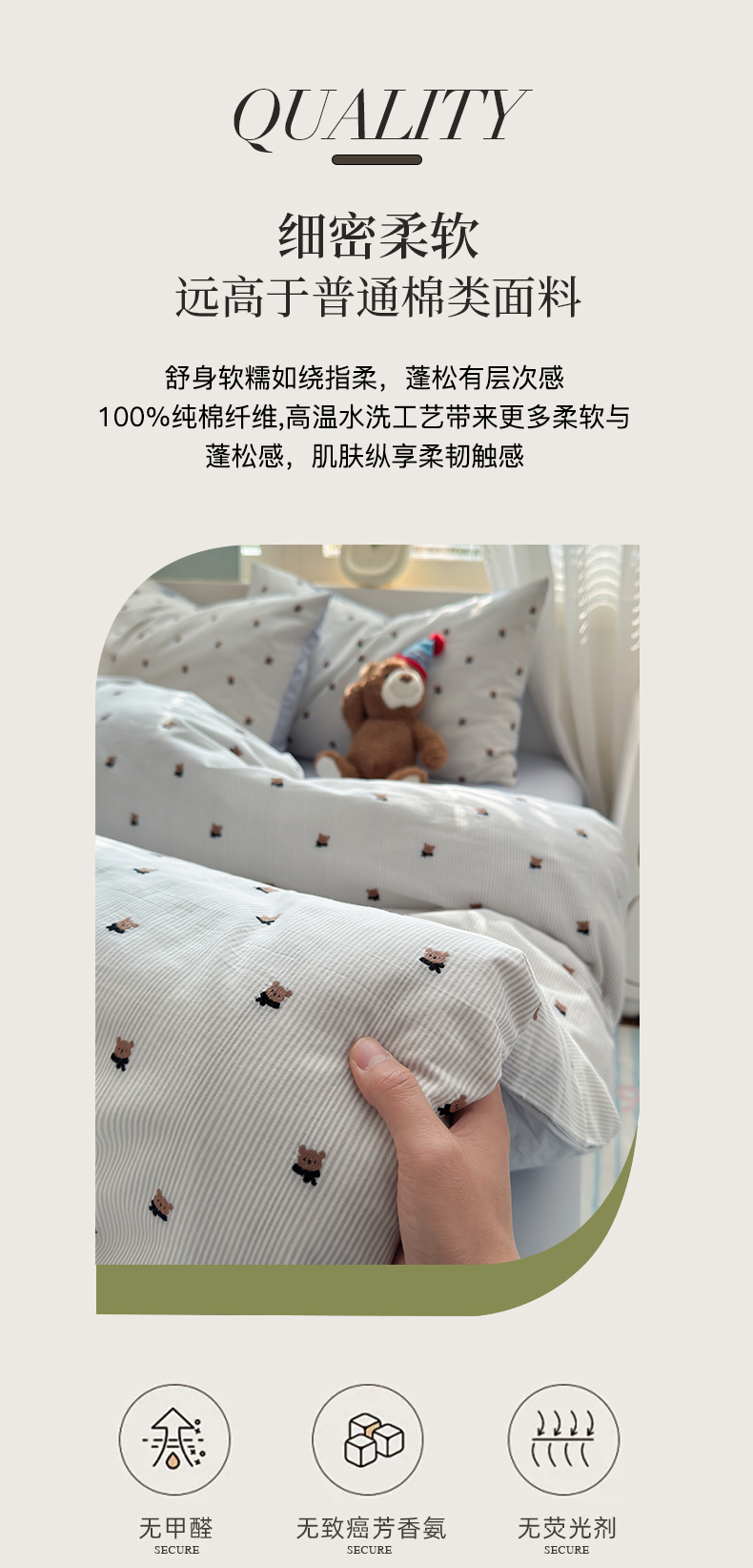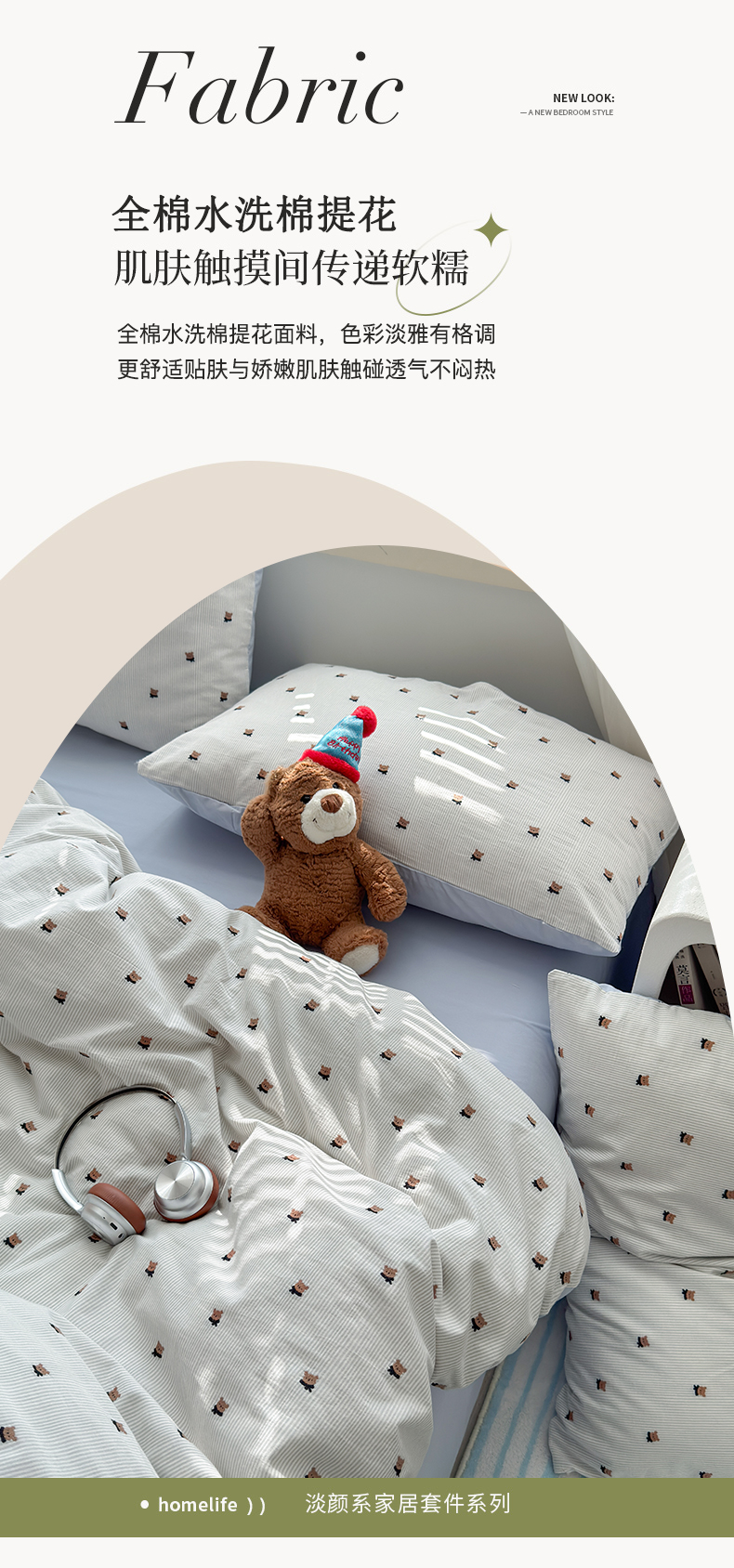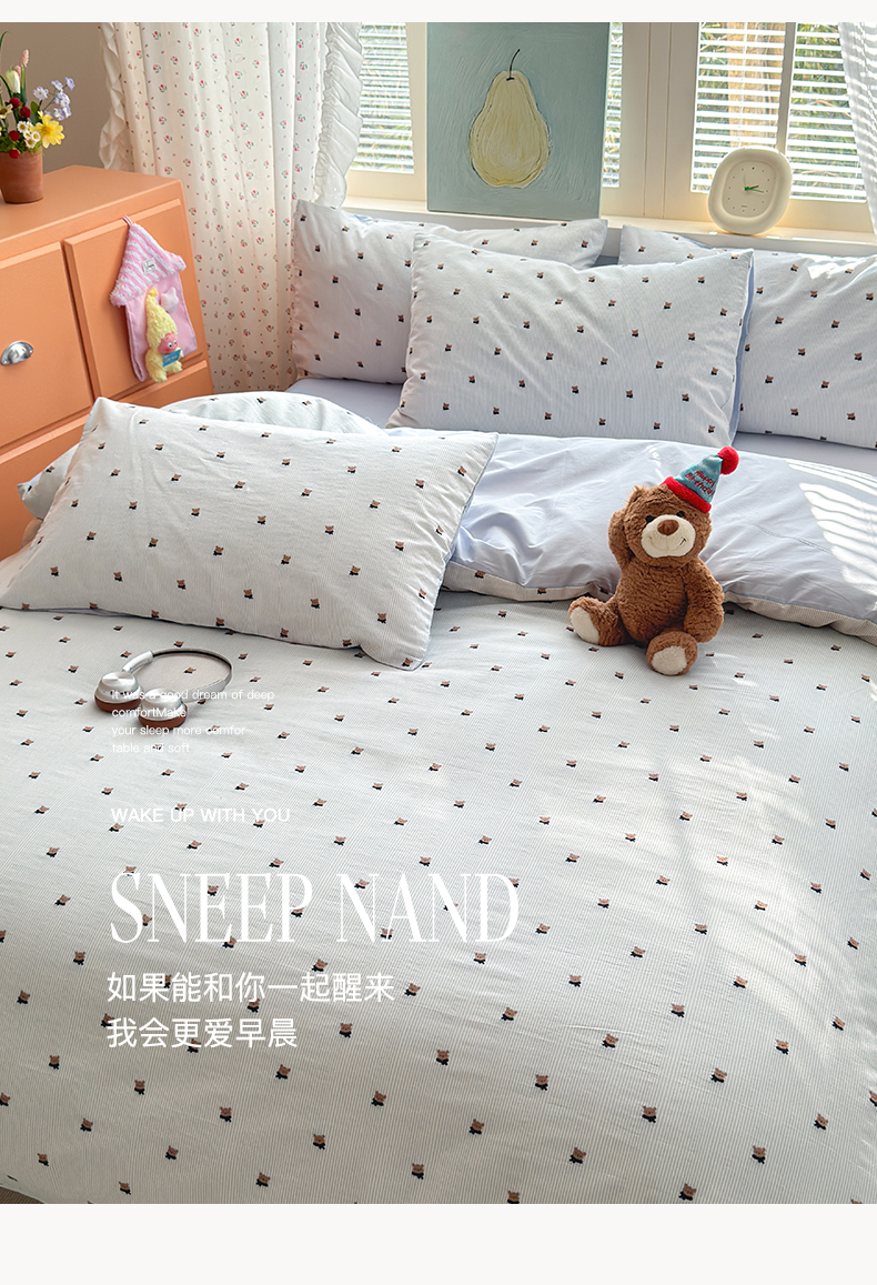 当前位置: 91家纺网 > 商品网购 > 床品套件 > 四件套 > 提花四件套 > 寐居家纺 2026新款舒适全棉水洗棉提花四件套 提花-小熊蓝