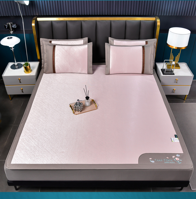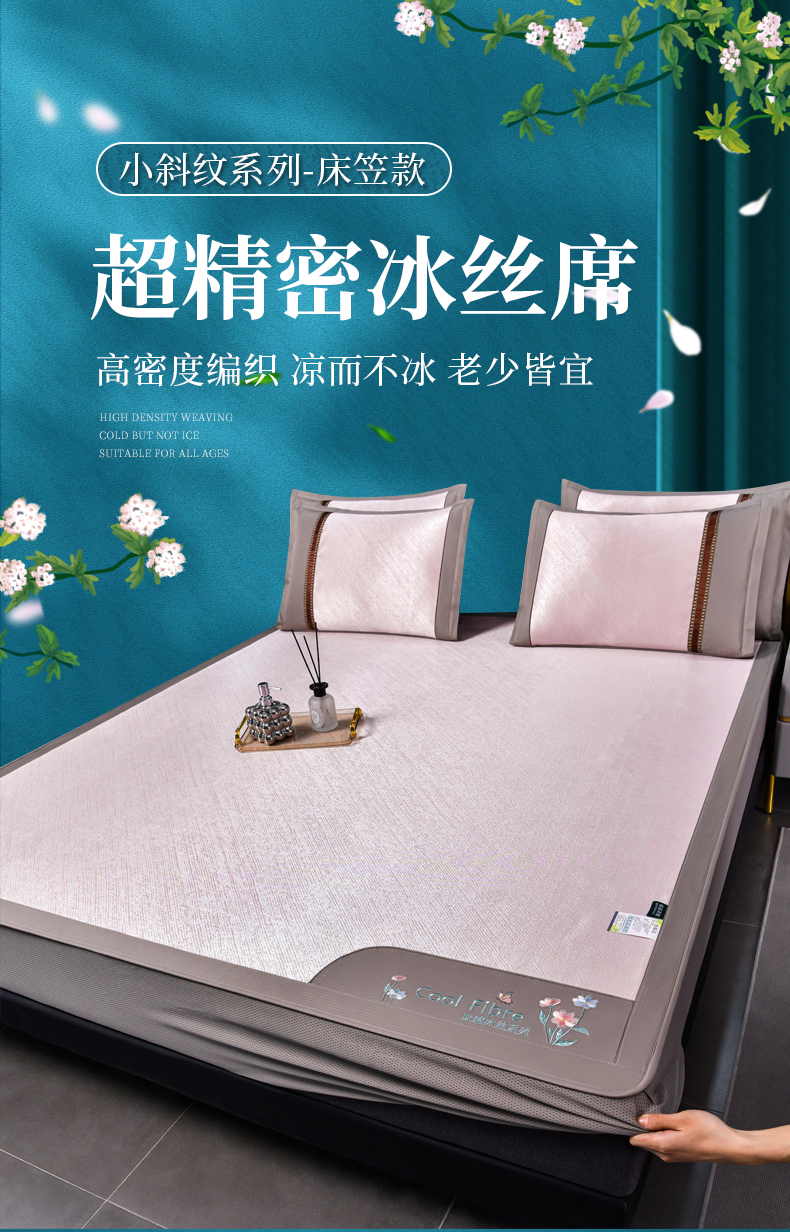(总)2023新款超精密冰丝席-小斜纹系列-床笠款藤席凉席竹席,粉色,蓝色,绿色,银灰
