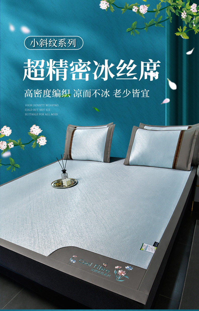 • 91家纺网 家纺一手货源 找家纺 小牛席业 2026新款超精密冰丝席-小斜纹系列凉席藤席冰藤席冰丝席竹席草席空调席乳胶席豆豆席 超精密冰丝席-小斜纹(蓝色)