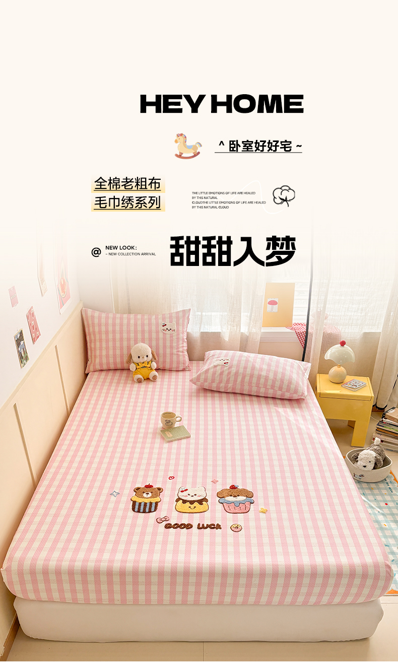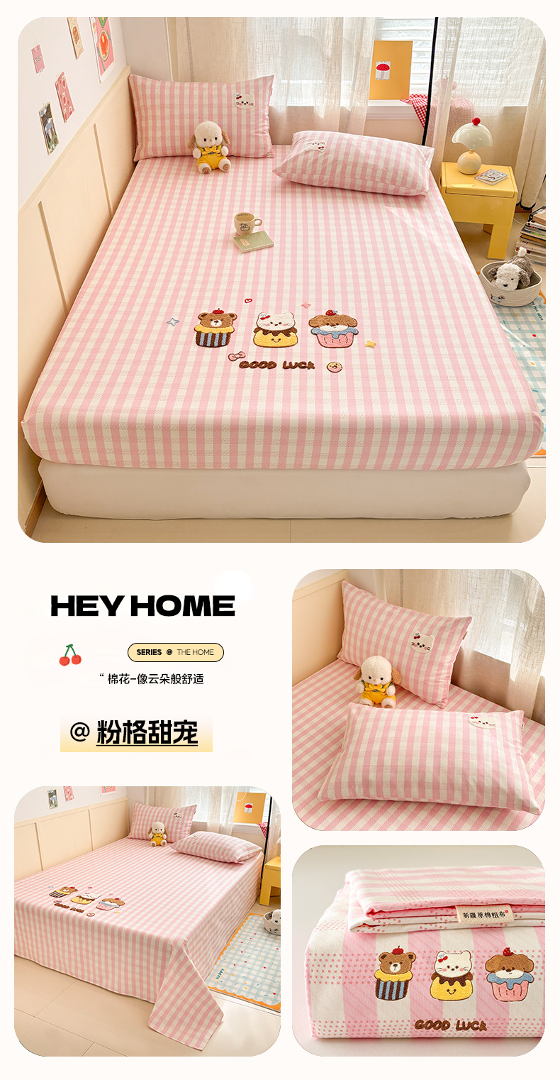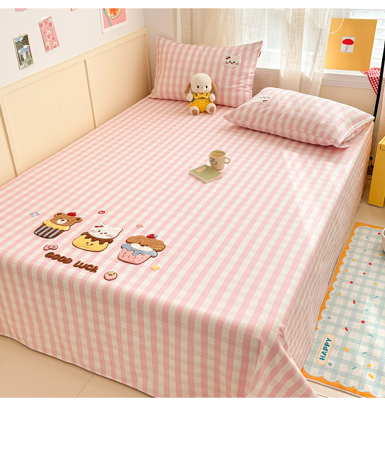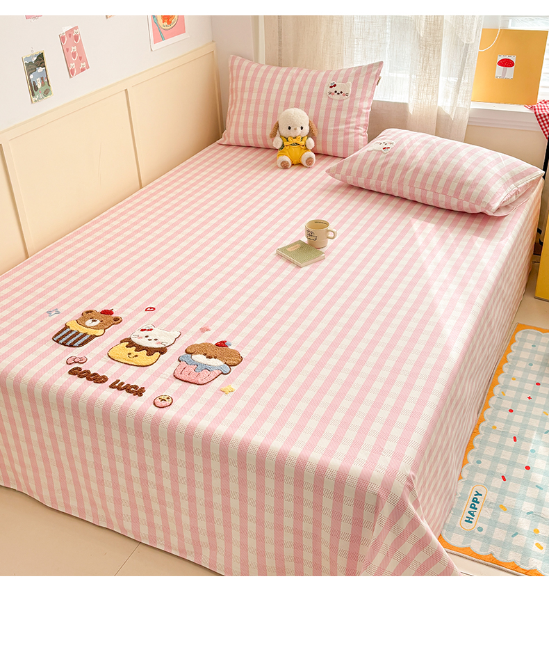 当前位置: 91家纺网 > 商品网购 > 床上用品 > 凉席 > 其他凉席 > 雅居纺家纺 2026新款毛巾绣全棉纯棉老粗布席子凉席床笠床单 粉格甜宠