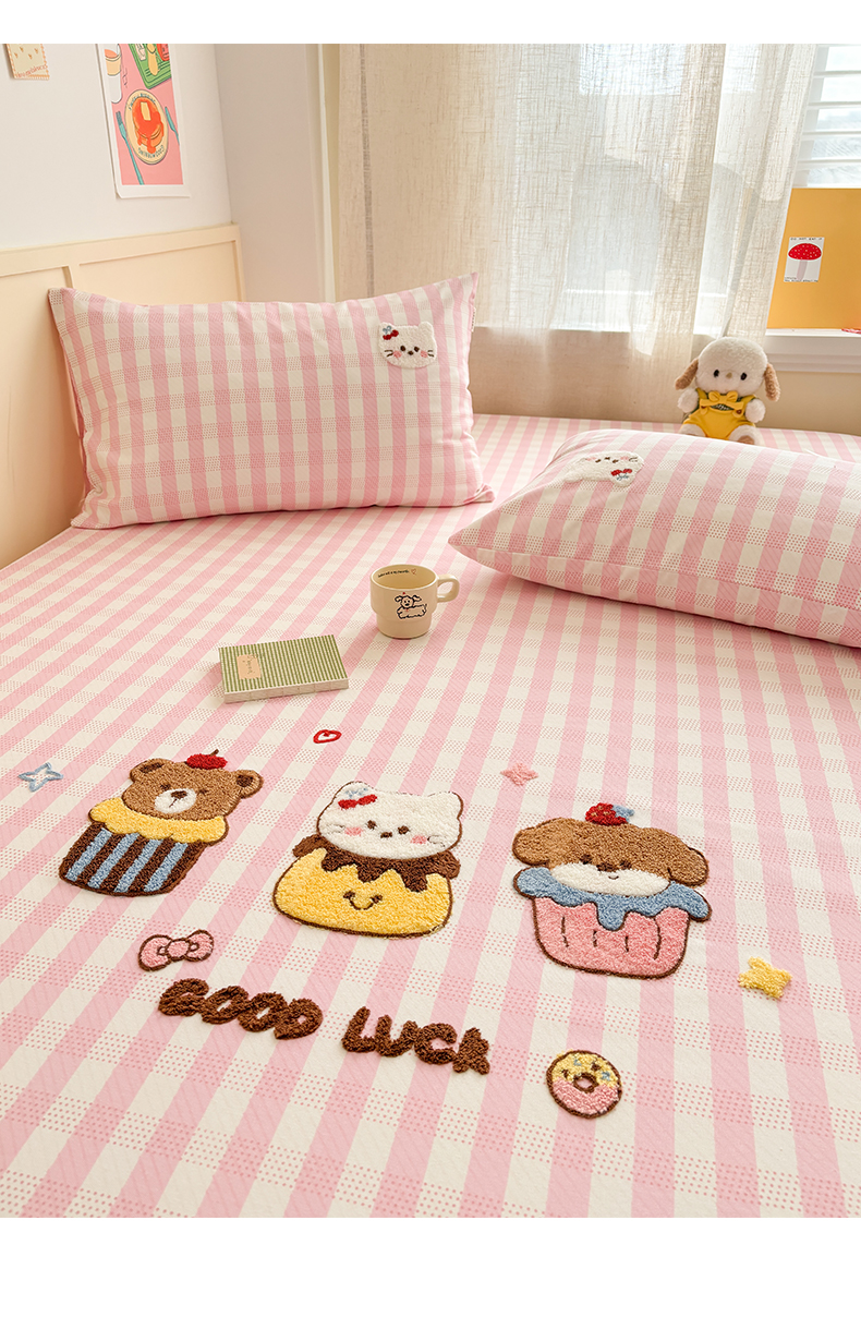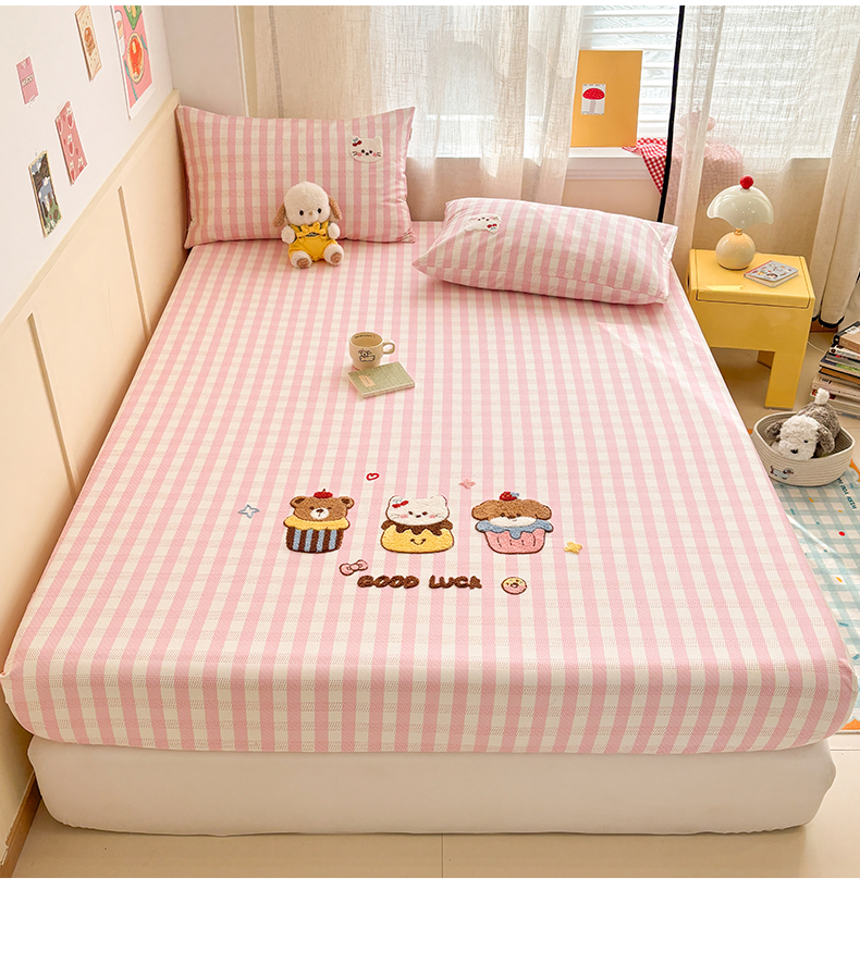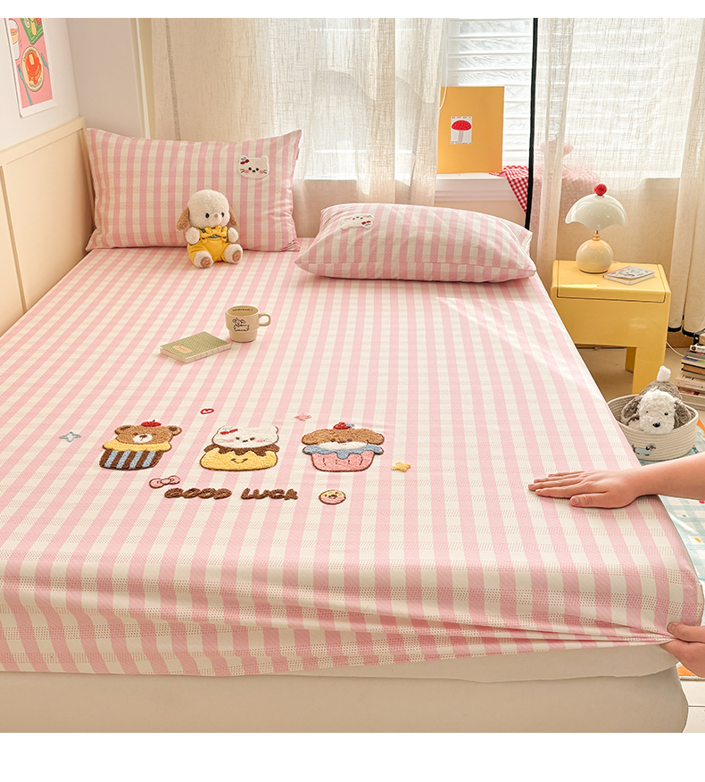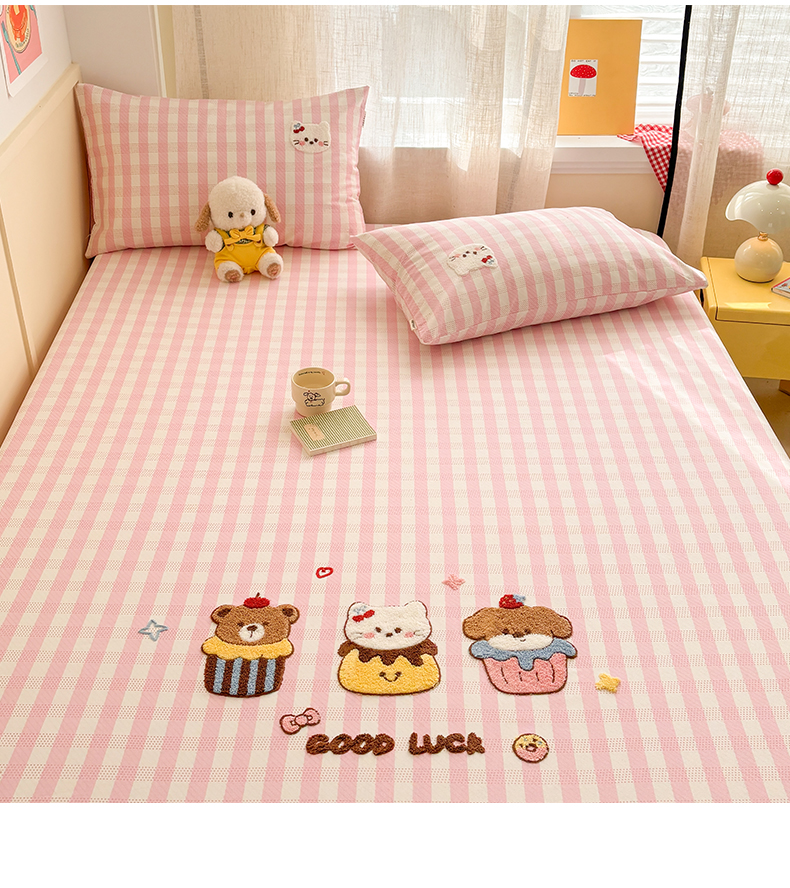 当前位置: 91家纺网 > 商品网购 > 床上用品 > 凉席 > 其他凉席 > 雅居纺家纺 2026新款毛巾绣全棉纯棉老粗布席子凉席床笠床单 粉格甜宠