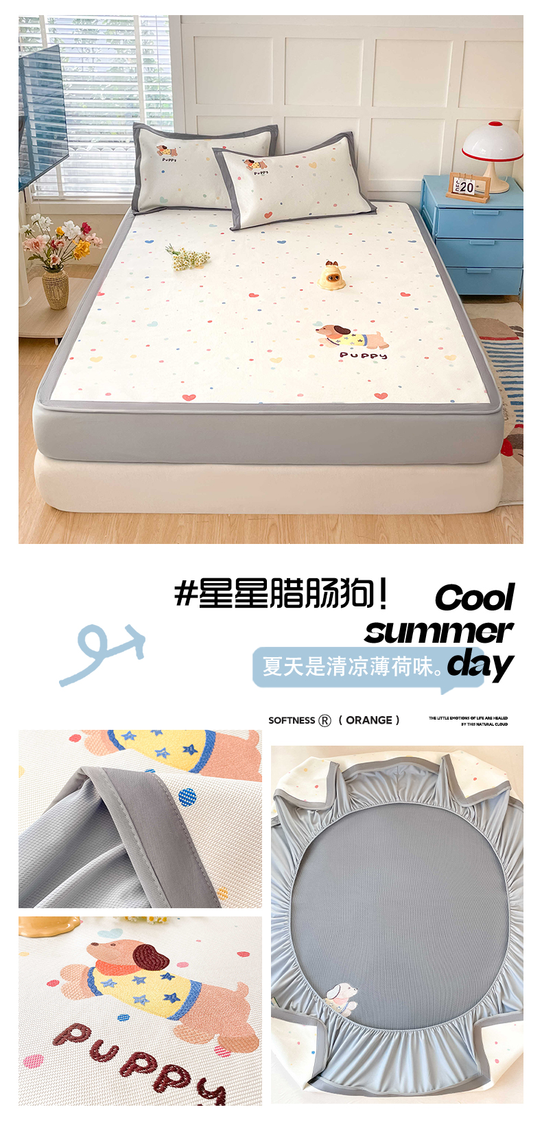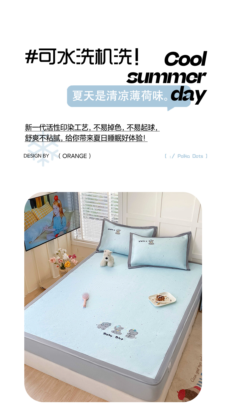 (总)雅居纺家纺 2026新款A类加厚三明治底绣花冰藤席学生宿舍床床单款凉席席子,冰淇淋萌狗,动感小狗,七彩虹,万事不南,小象家族,星星腊肠狗,幸运巴拉