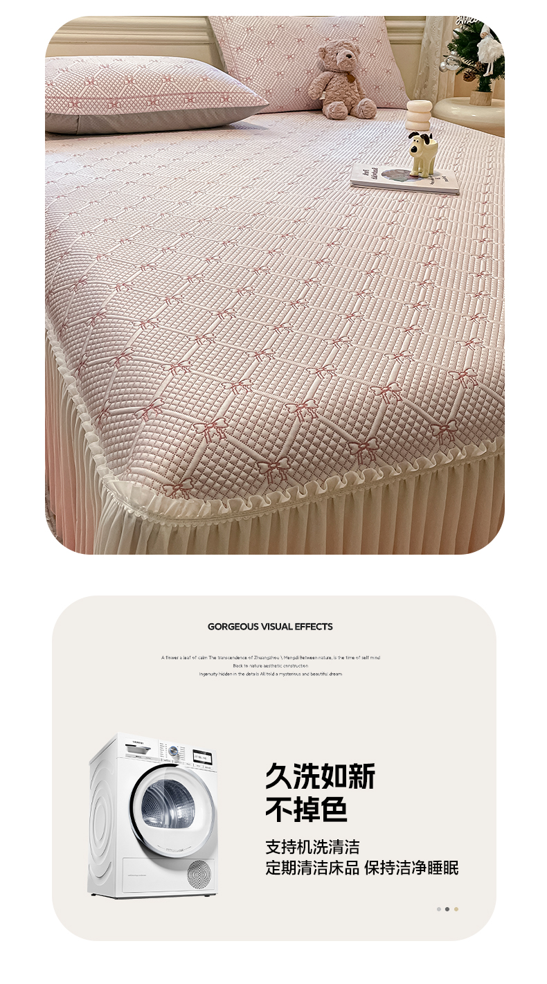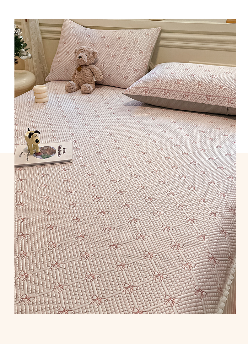 商品名称:雅居纺家纺 2026新款加厚三明治底床裙款凉感席凉席席子 蝴蝶结爱恋-粉
