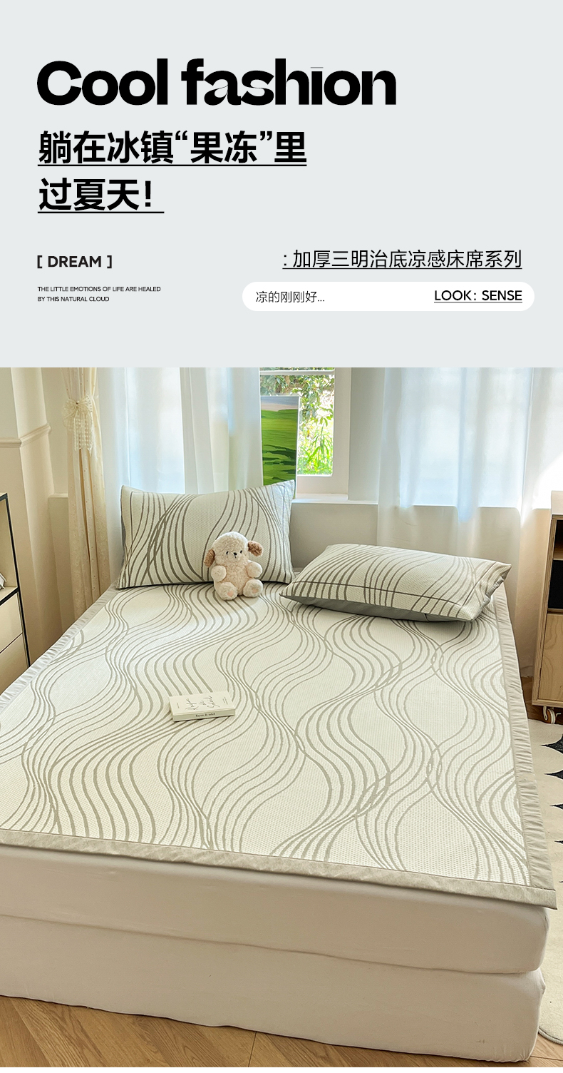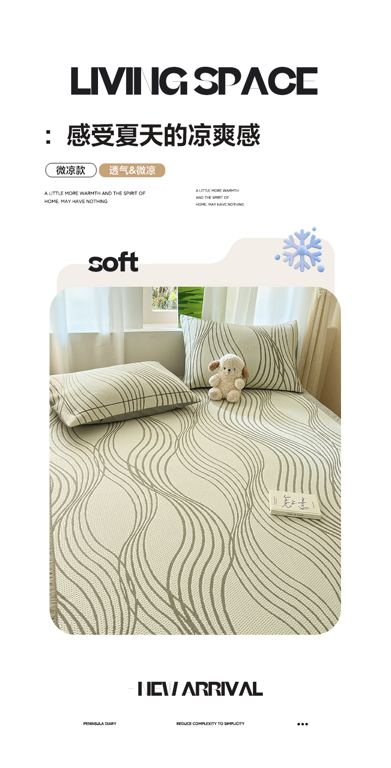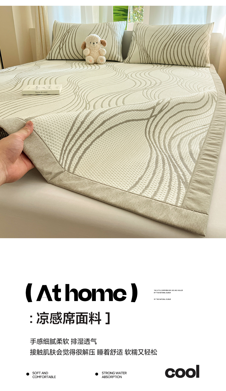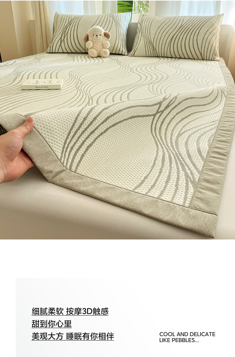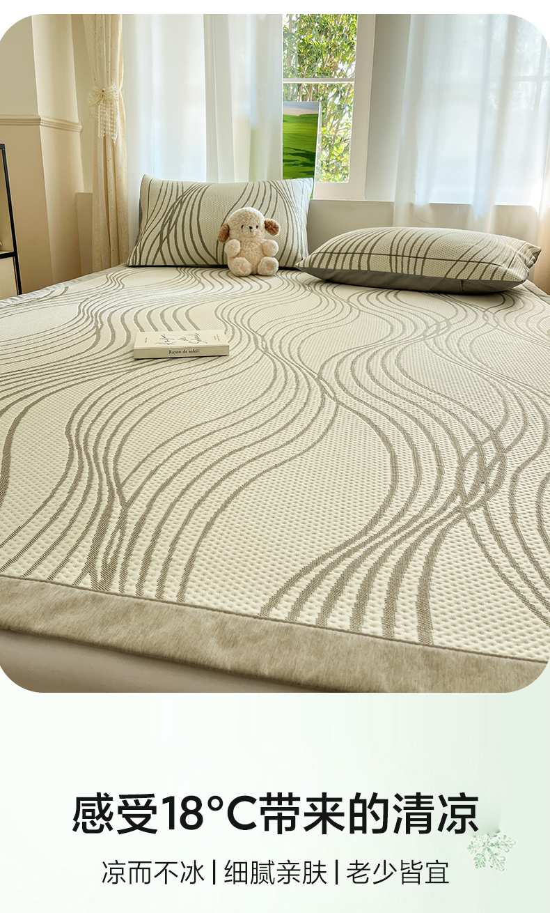 商品名称:雅居纺家纺 2026新款加厚三明治底凉感豆豆简约款凉感席床单款凉席席子 曲线-香槟