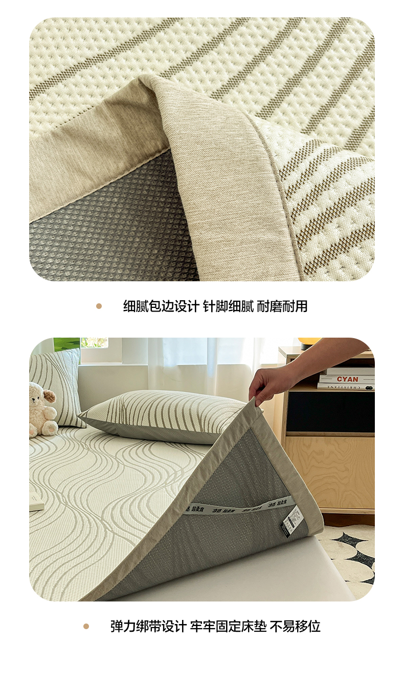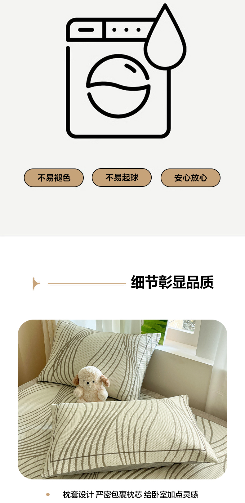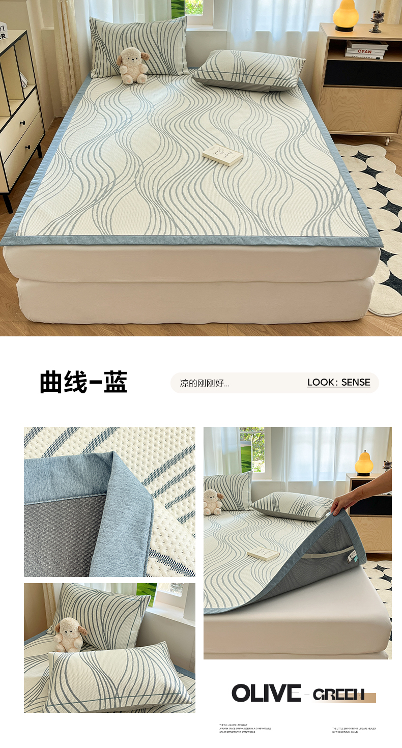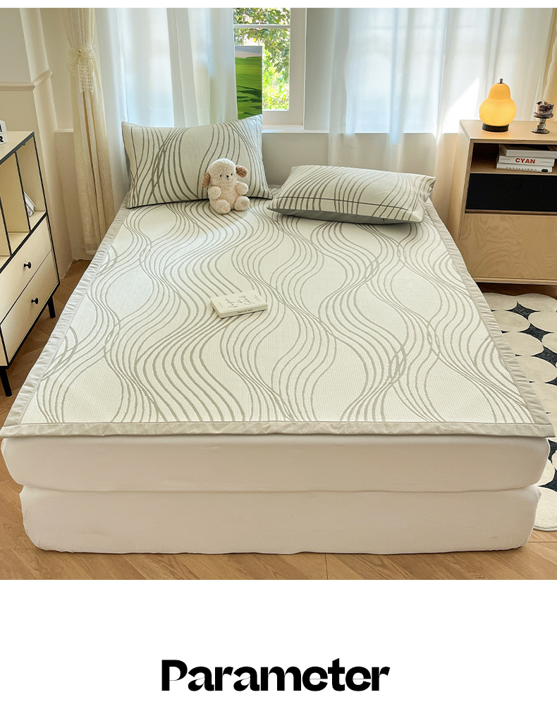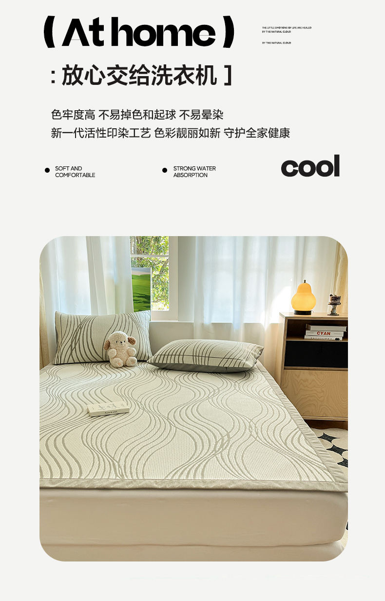 商品名称:雅居纺家纺 2026新款加厚三明治底凉感豆豆简约款凉感席床单款凉席席子 曲线-香槟