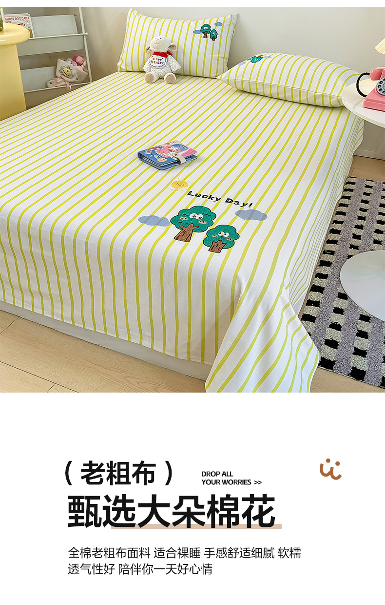 雅居纺家纺 2026新款全棉绣花A类老粗布床单单件床单单品凉席席子 老粗布-发财树