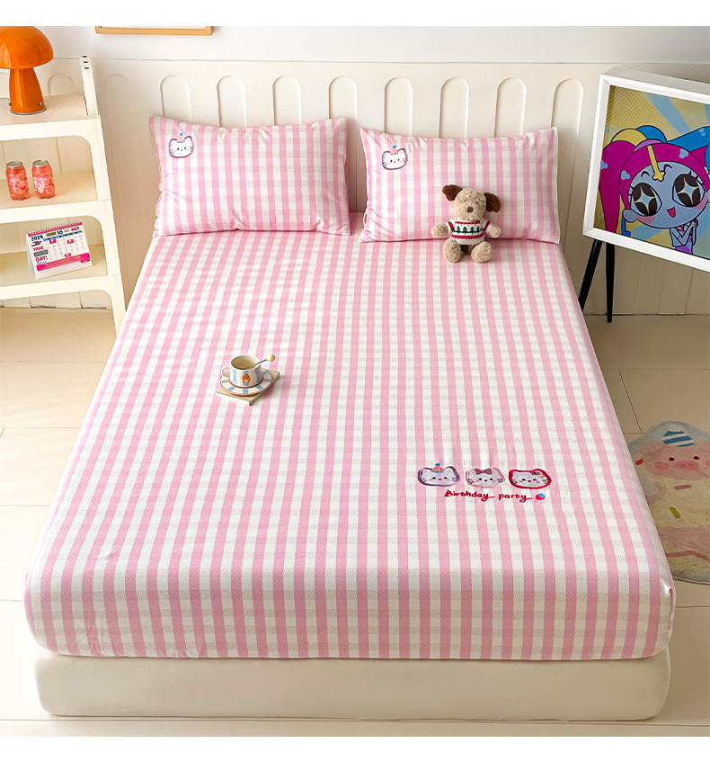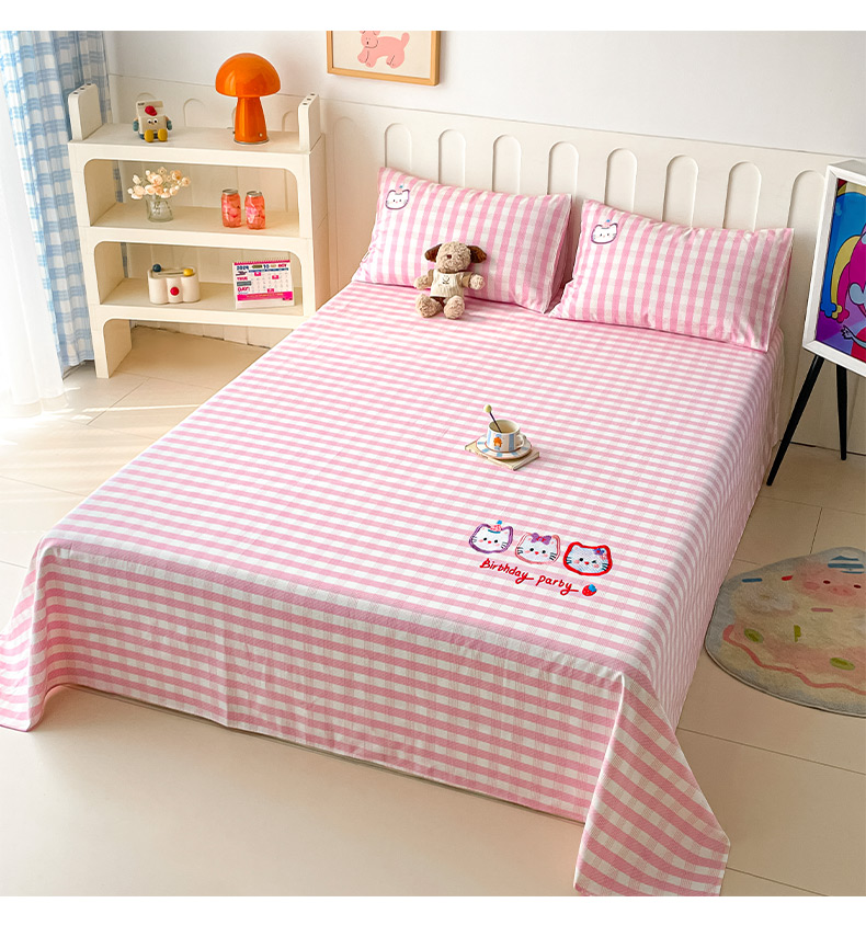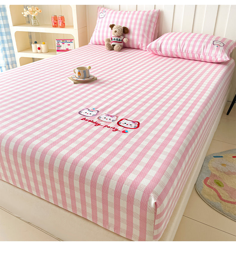 商品名称:雅居纺家纺 2026新款全棉绣花A类老粗布床笠单件床笠单品凉席席子 老粗布-猫咪派对