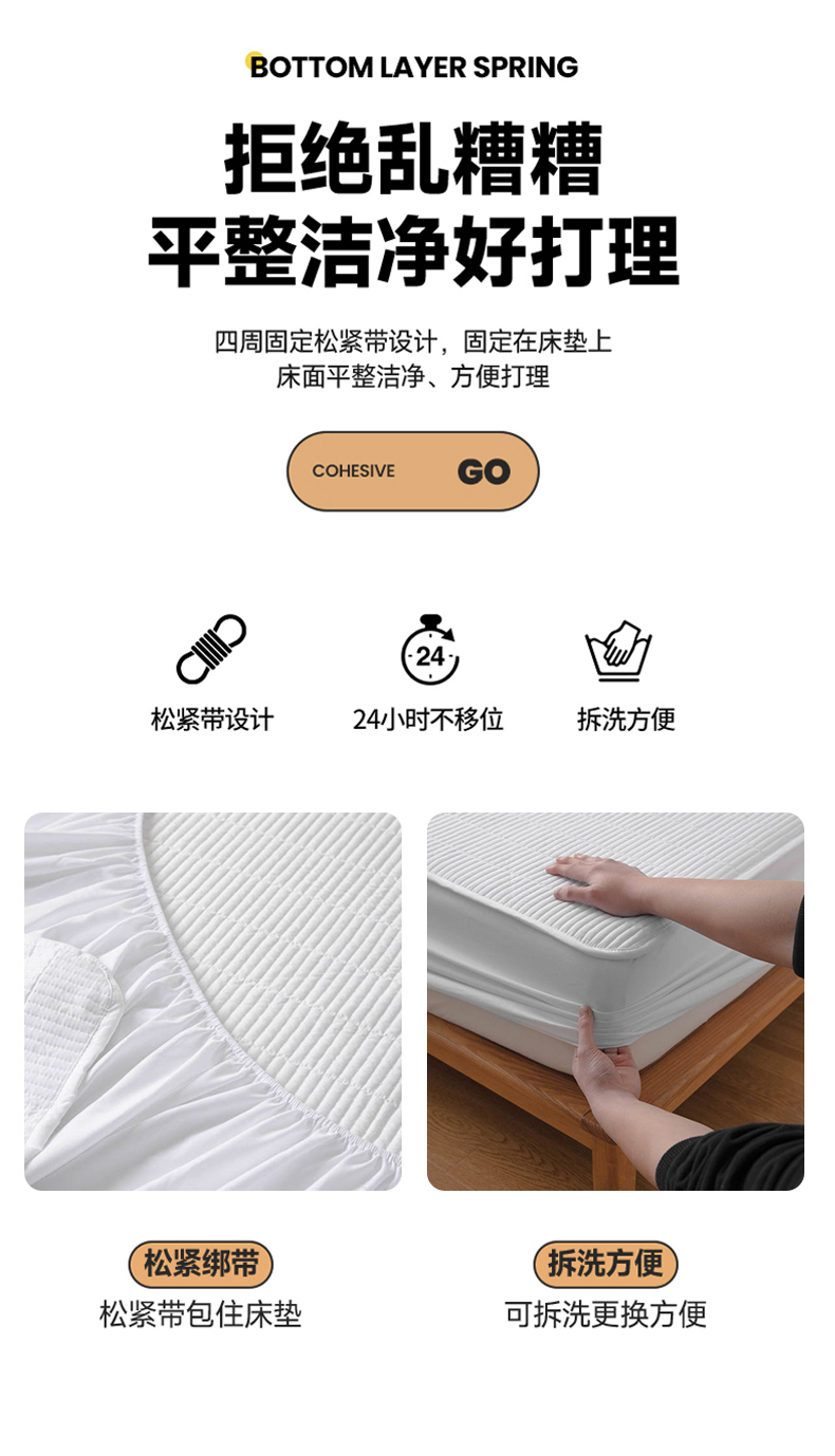(总)宇淳国际 2026爱心款防水夹棉床笠,草绿,白色,丁香紫,卡其,奶黄,浅灰,天蓝,玉色