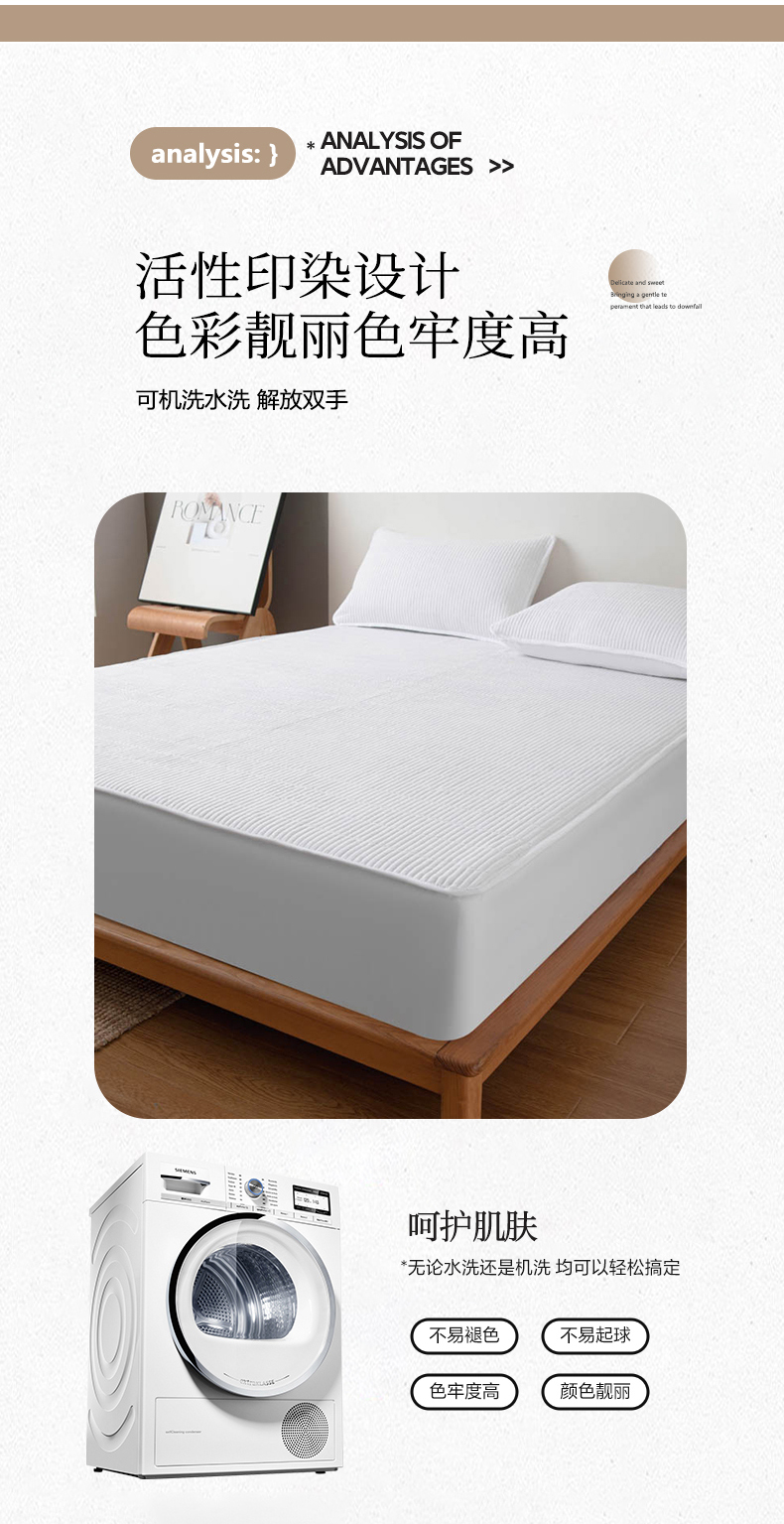 (总)宇淳国际 2026新款美人条A类水洗棉夹棉床笠三件套,白色,卡其,奶黄,浅灰,深灰,天蓝