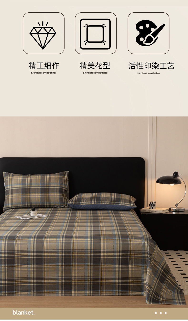 简宜家居(朝初家纺) 2026新款40支13070全棉简约格子系列A版床单 英伦-青澜