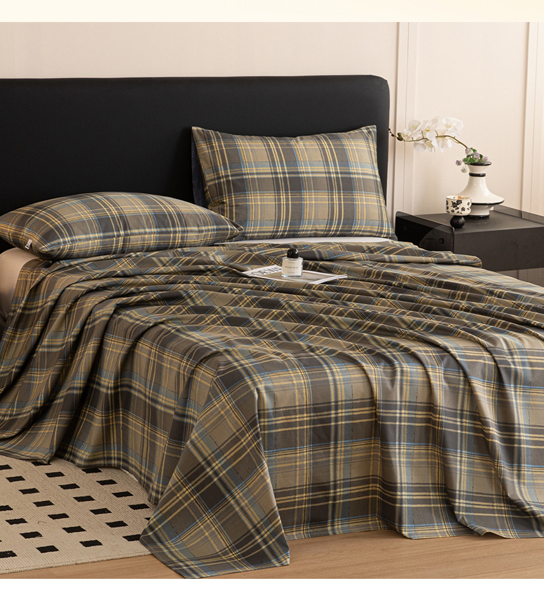 • 91家纺网 家纺一手货源 找家纺 简宜家居(朝初家纺) 2026新款40支13070全棉简约格子系列A版床单 英伦-青澜