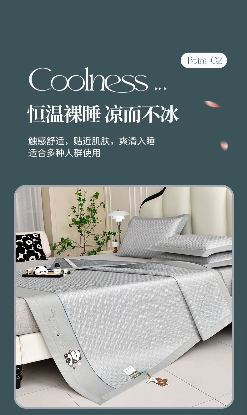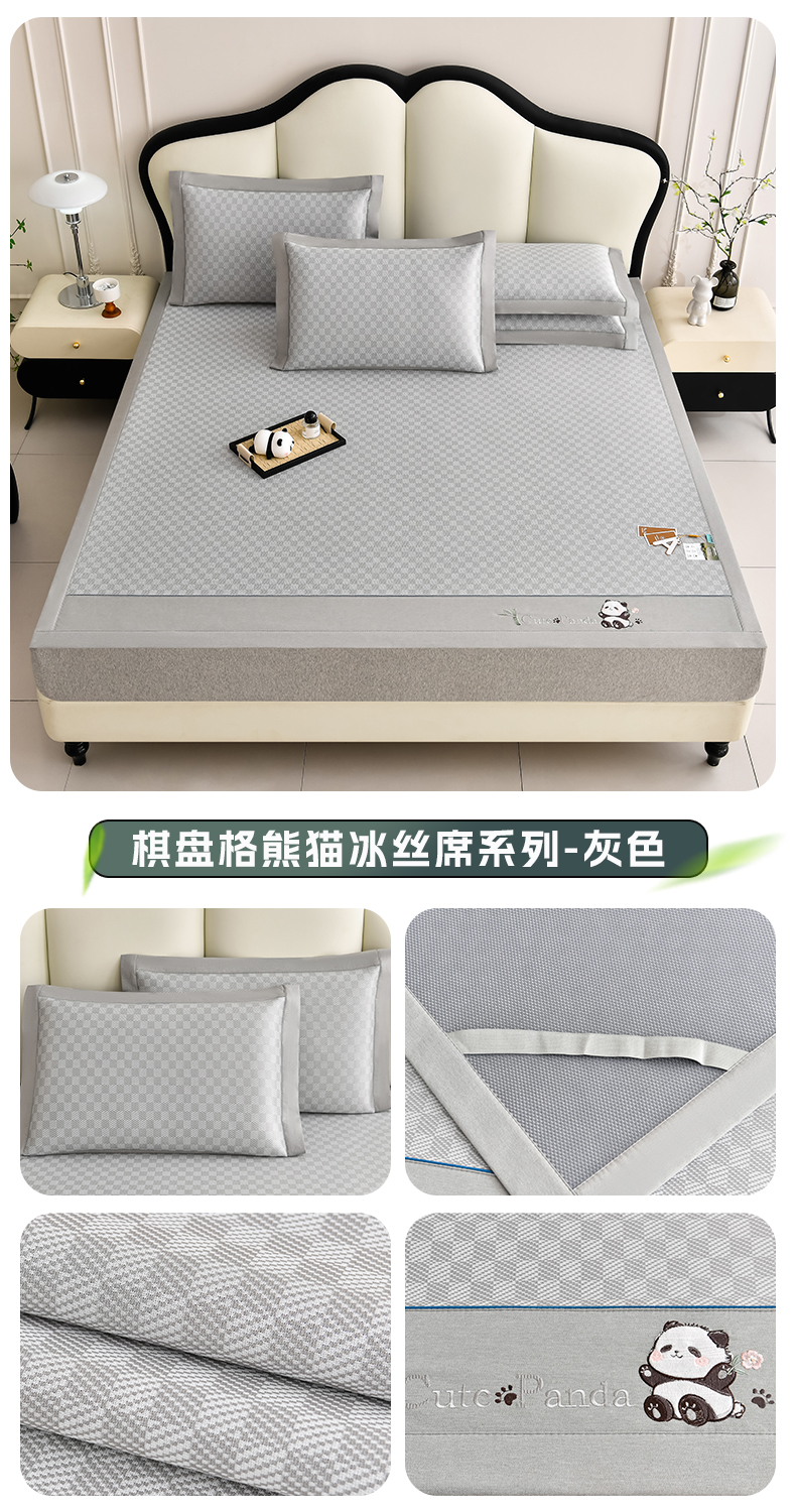 小牛席业 2026新款亲肤舒适棋盘格-熊猫冰丝席席子凉席 棋盘格-熊猫冰丝席-绿色