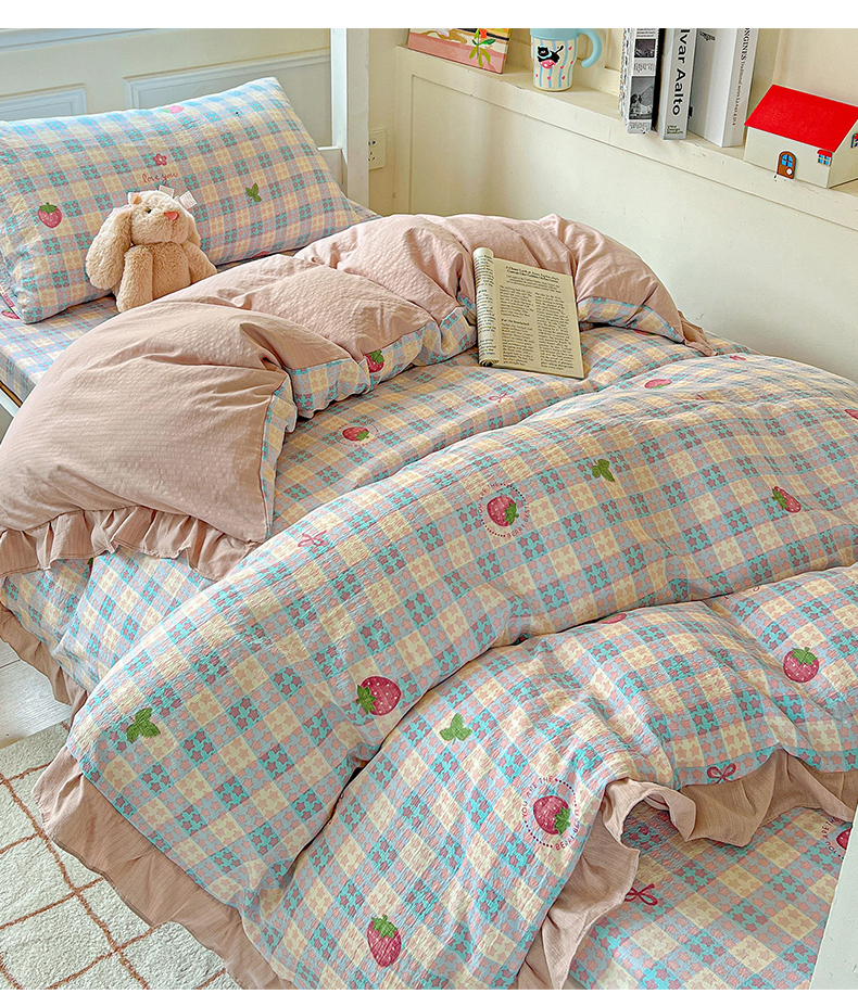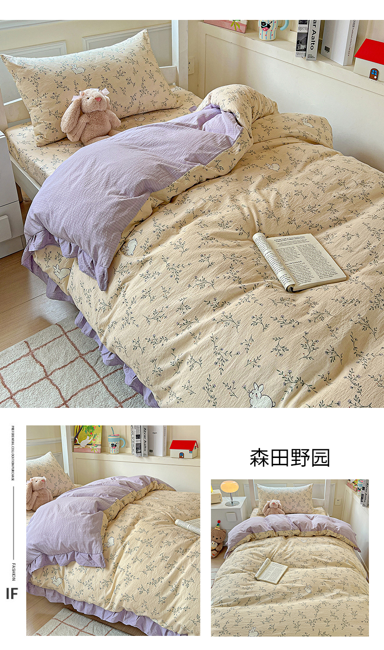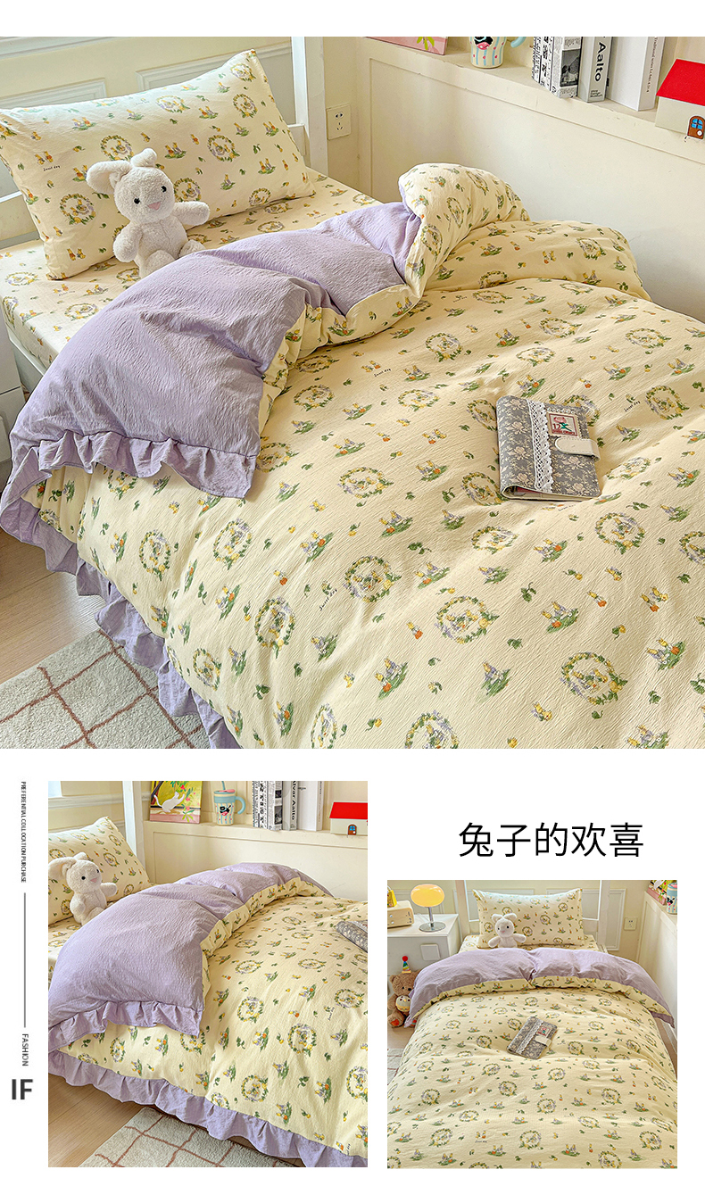 当前位置: 91家纺网 > 商品网购 > 床品套件 > 四件套 > 其它四件套 > 纽缦家纺 2026新款云感提花双层纱学生床韩版床单床笠三四件套 裙子小兔