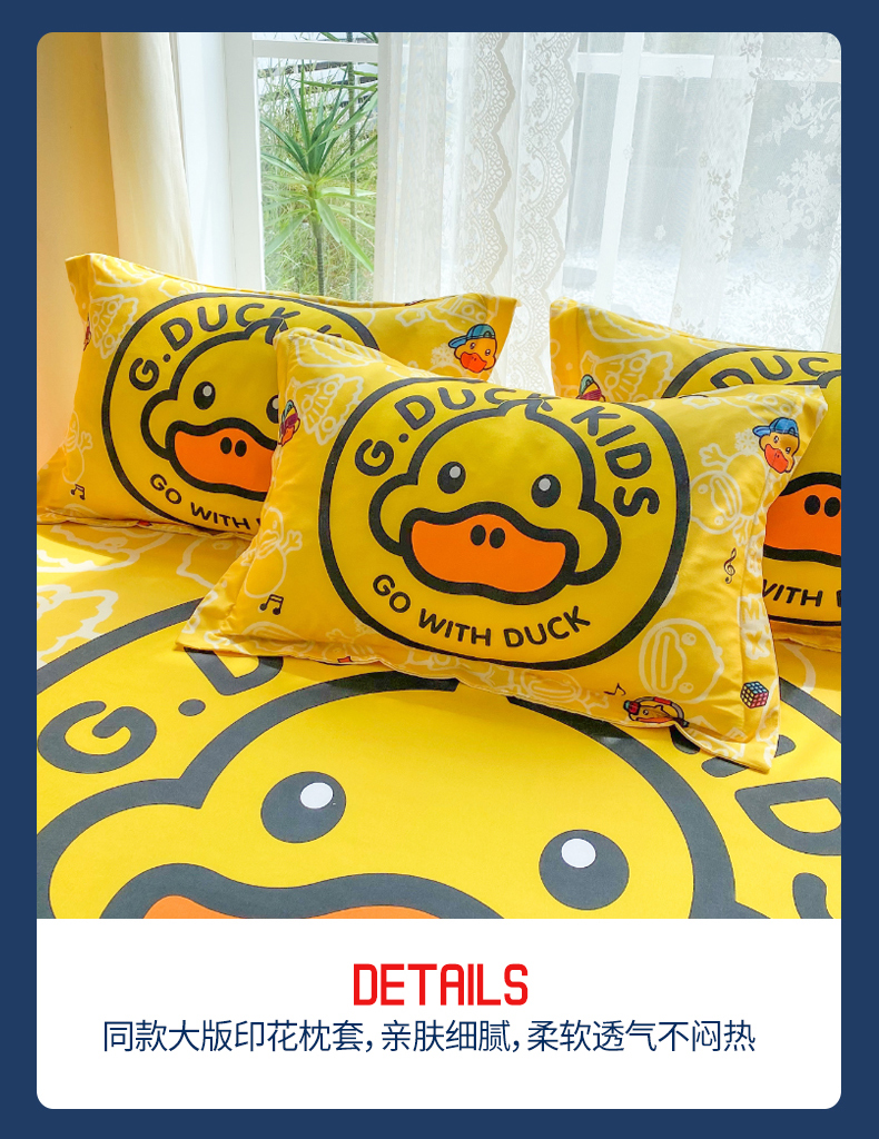 商品名称:一电 2026新款跨境电商卡通学生枕头套枕套48x74cm单只件一对装儿童男孩枕皮子-2.磨毛枕套 黄小鸭