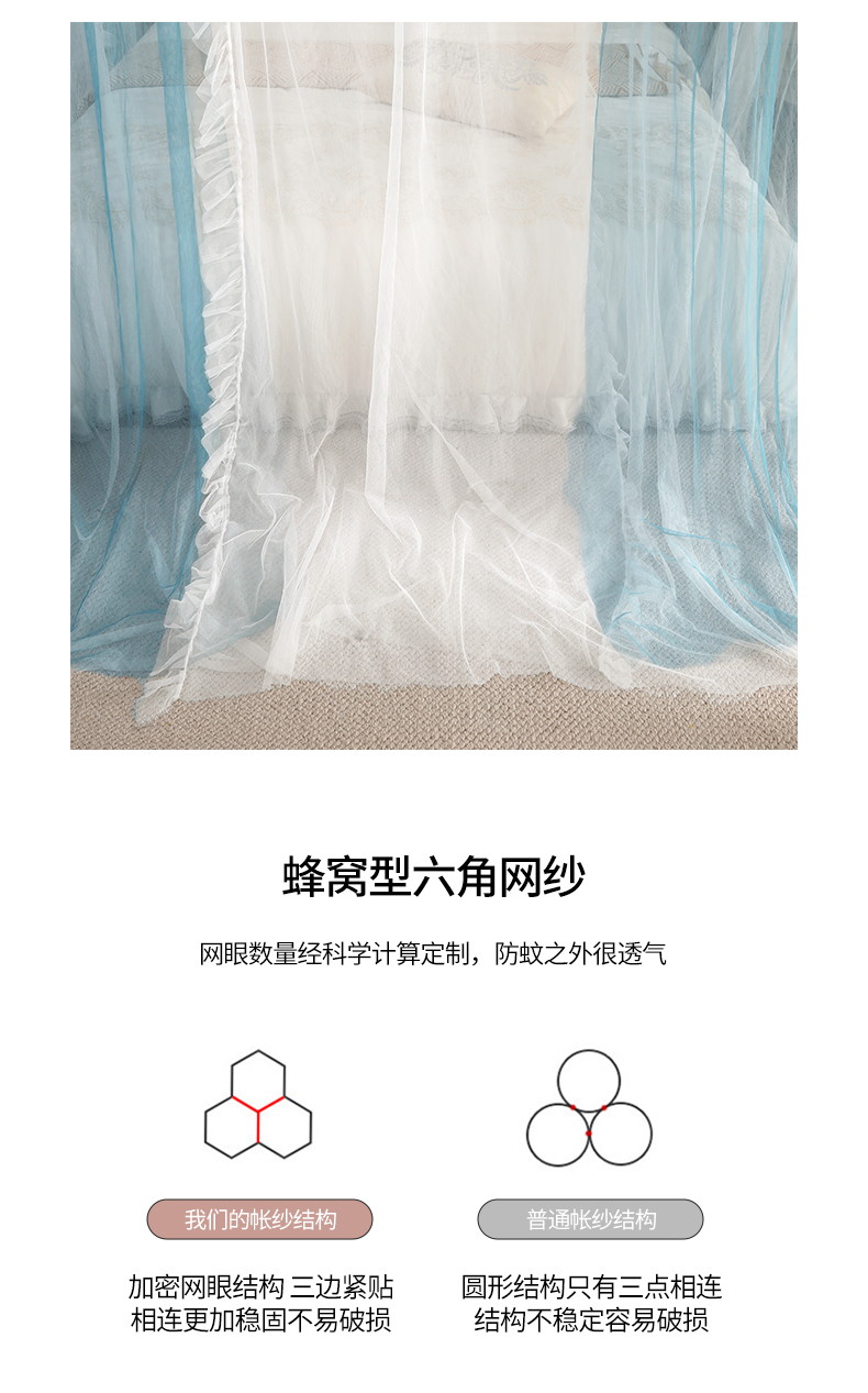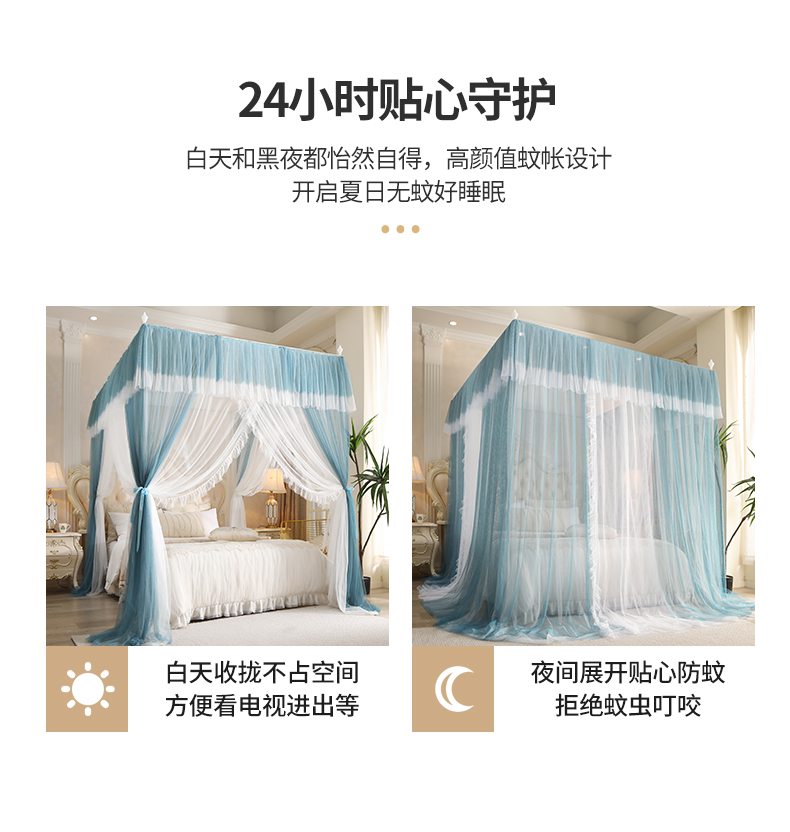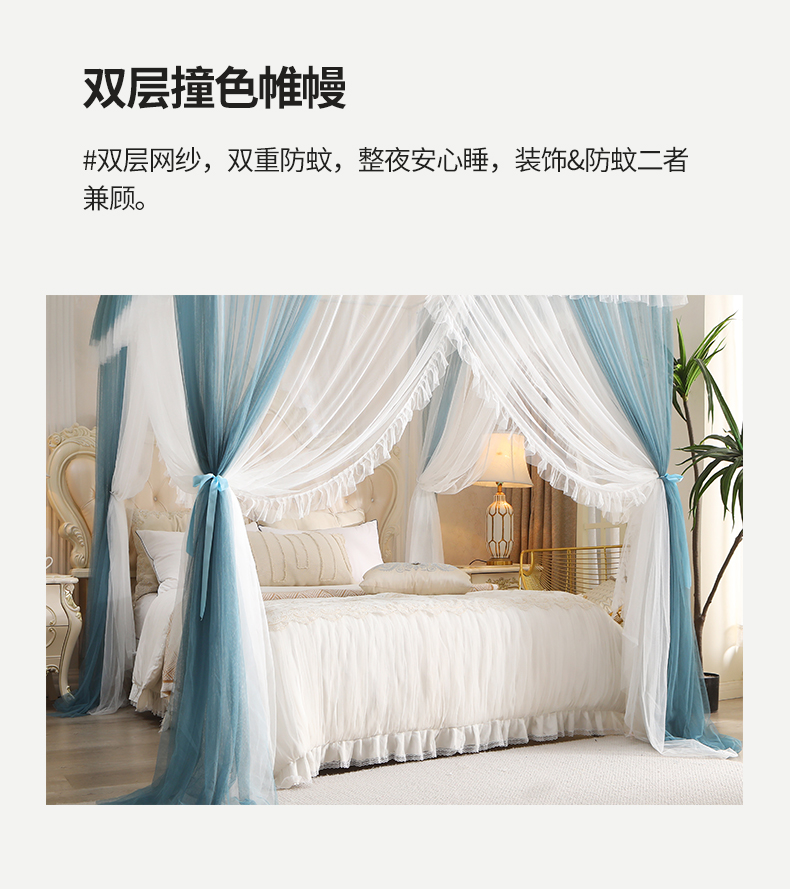 商品名称:青竹苑 2026春夏新款双层纱撞色落地蚊帐 宝蓝