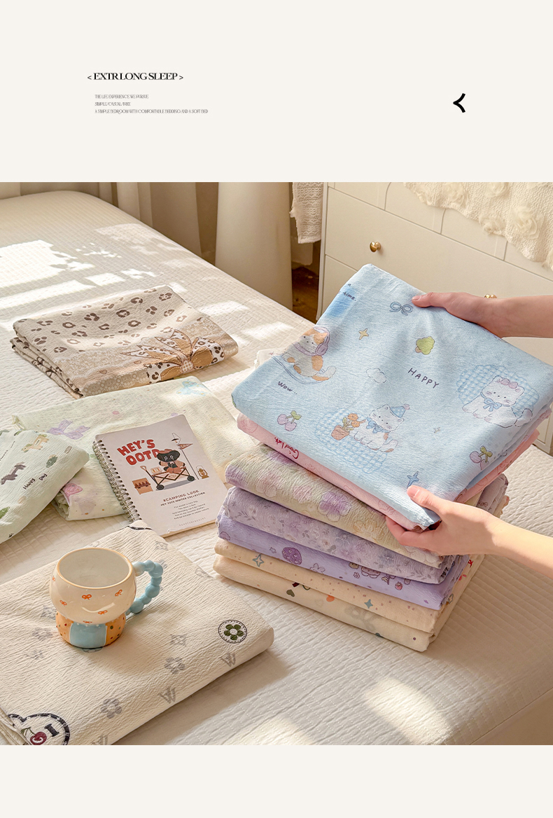 • 91家纺网 家纺一手货源 找家纺 (总)眠势力 2026新款双层纱床笠单件云感皱皱纱床罩三件套床垫保护套,紫雾花汀,缤纷彩结,彩色心情,草莓蝴蝶结,春野织梦,哈喽猫咪,海盐奶猫,花漾草莓,金蝶逐影,萌兔乐园,青樱兔语,向云端,星梦甜心,幸运小马,紫芋南瓜,组合图 仅供参考