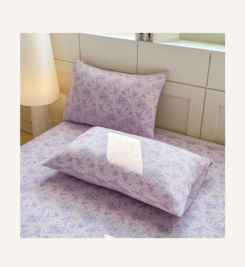 眠势力 2026新款双层纱床单单件云感皱皱纱床罩三件套 紫雾花汀