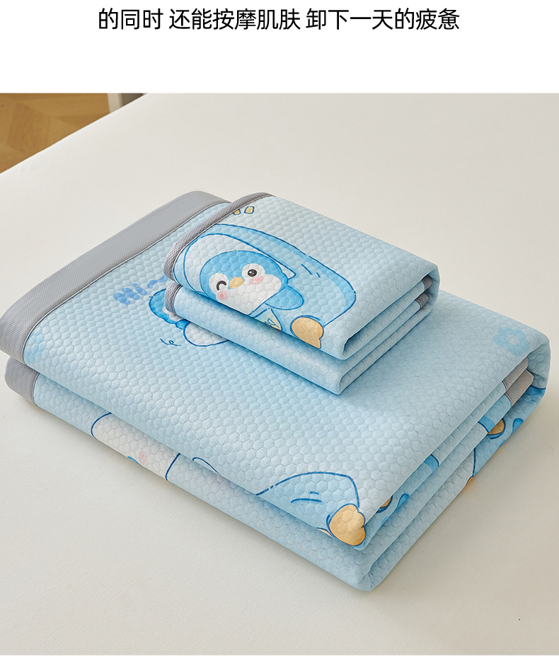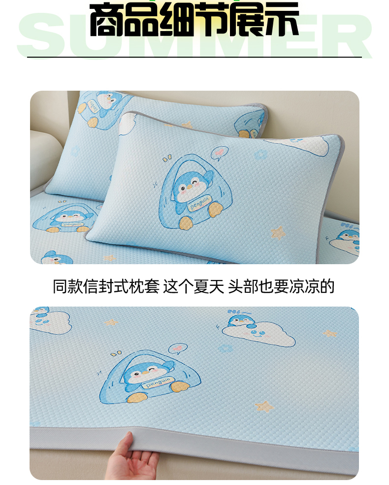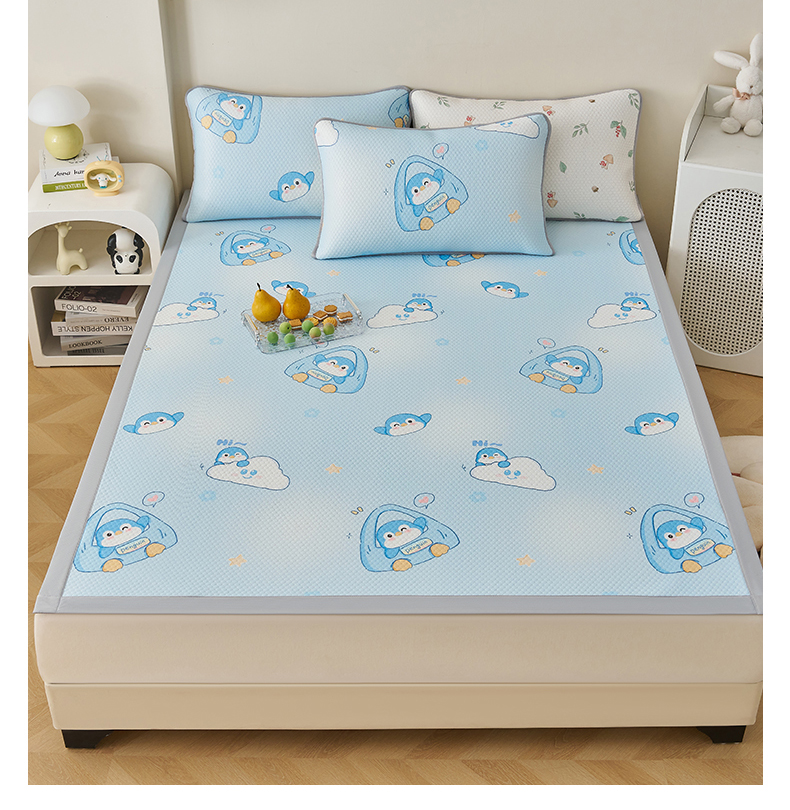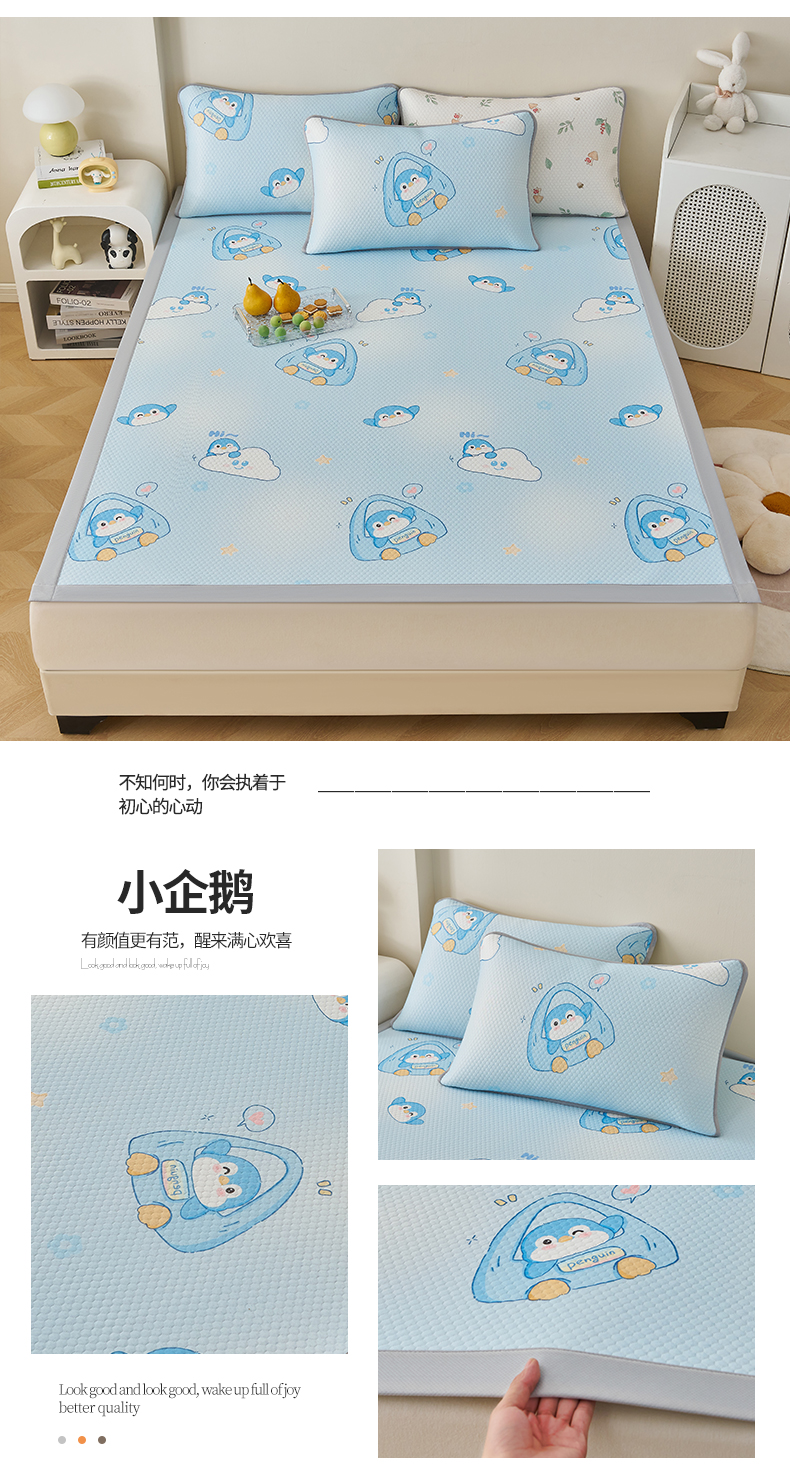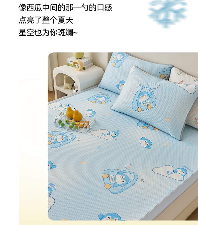 商品名称:奇丝雅 2026新款A类印花冰豆豆凉席三明治透气网冰丝凉席家用双人冰丝席床单可机洗大床图 大床款-小企鹅