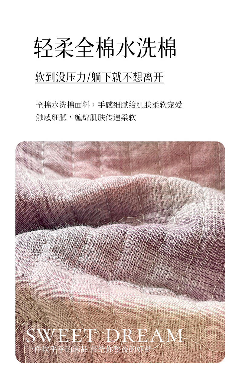 (总)梦精灵家纺 2026新款纯色全棉床盖单件纯棉绗缝夹棉床单 四季通用榻榻米防滑学生宿舍单人床盖枕套,素境-粉,素境-蓝,素境-绿,素境-紫,素境-灰,素境-咖