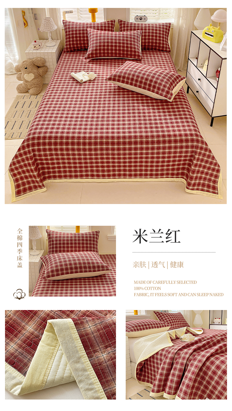 (总)梦精灵家纺 2026新款全棉床盖单件色织水洗棉绗缝夹棉床单 四季通用榻米防滑学生宿舍单人被套枕套,浮影紫,米兰红,米兰咖,米兰米,木槿黑,西蒙-蓝,西蒙-黄,鹅黄,利奥-蓝,桔红,利奥-红,幻影绿,利奥-绿,维多利亚-米,棕咖,可颂-咖,罗恩-灰,左岸-粉,雅灰