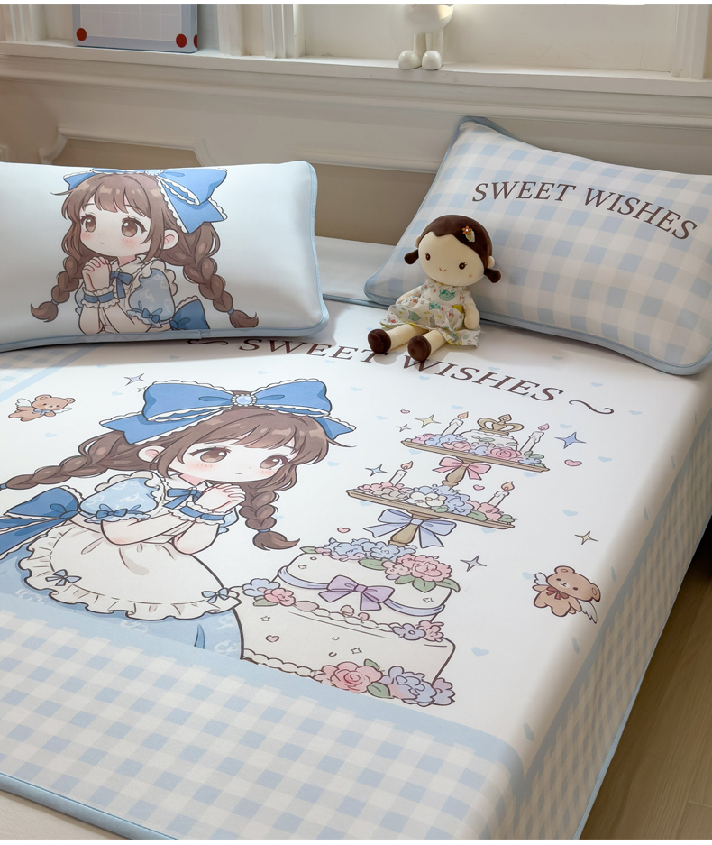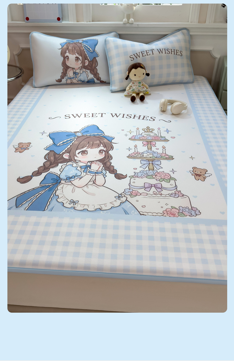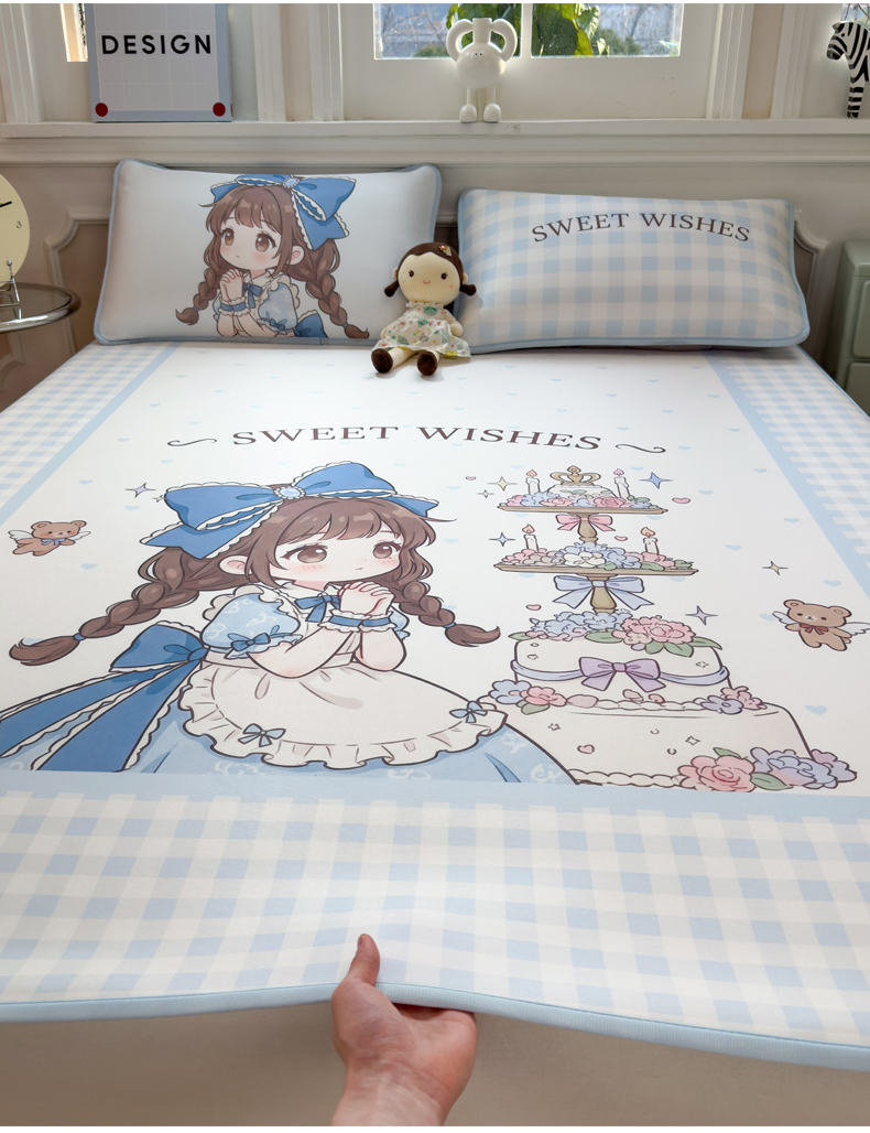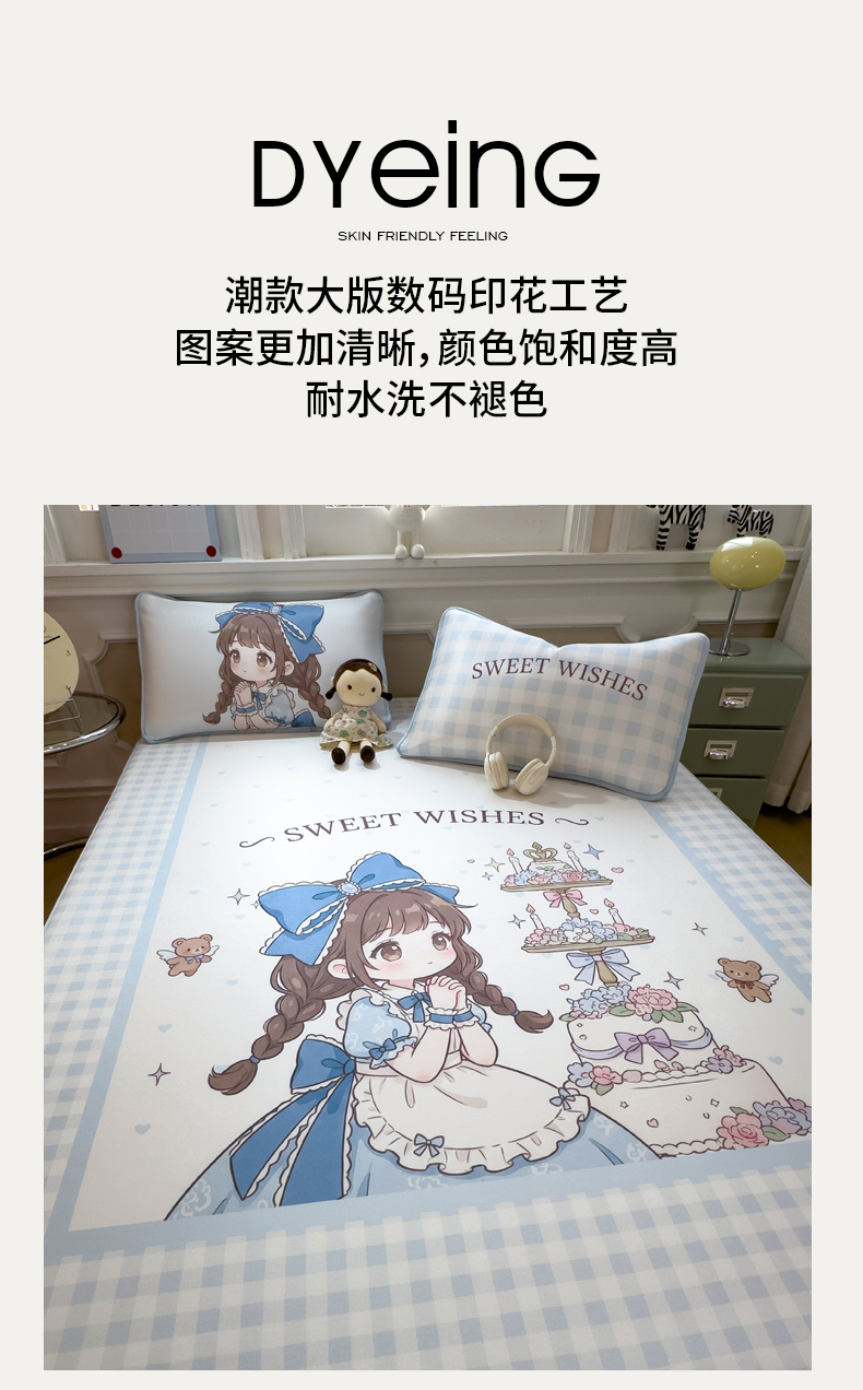 商品名称:丝羽坊 2026新款ins设计师原创大版小清新卡通冰皮复合软凉席 甜梦公主-平铺款
