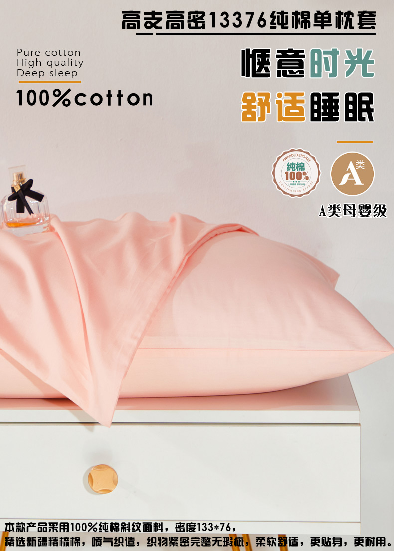 商品名称:晶缦家纺 2026新款喷气A类全棉13376纯棉斜纹纯色单枕套单品枕套枕套单件 沐朗-粉玉