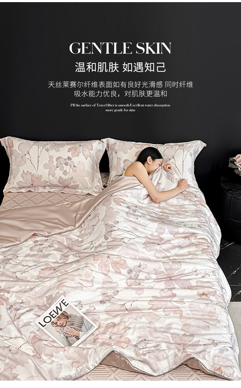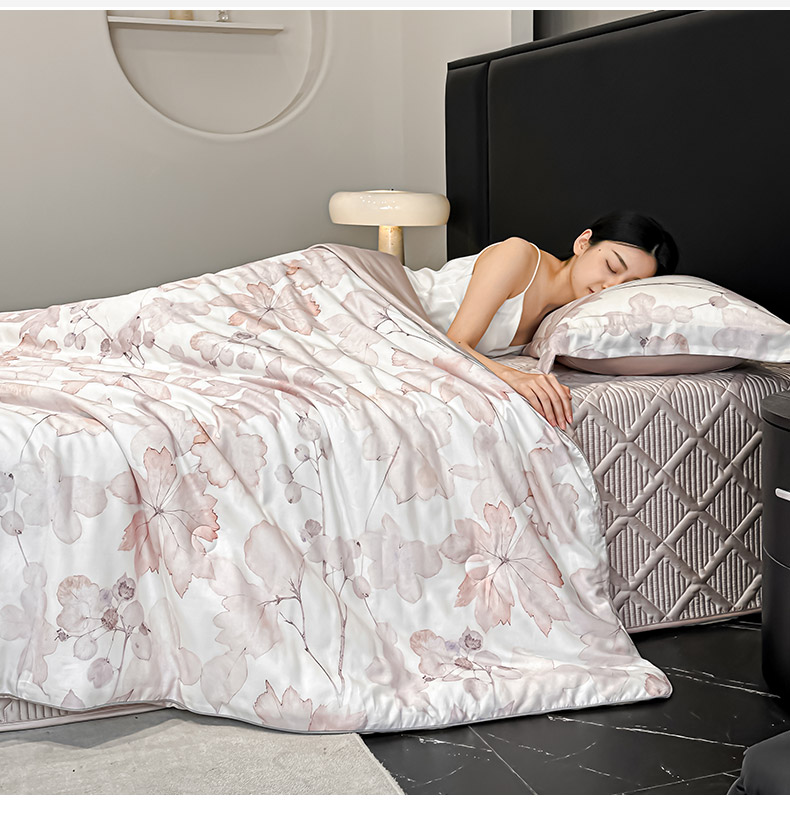 • 91家纺网 家纺一手货源 找家纺 吾秀家居 2026春夏新款数码印花莱赛尔天丝夏被夏凉被空调被-天印系列 相思叶