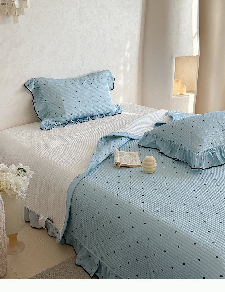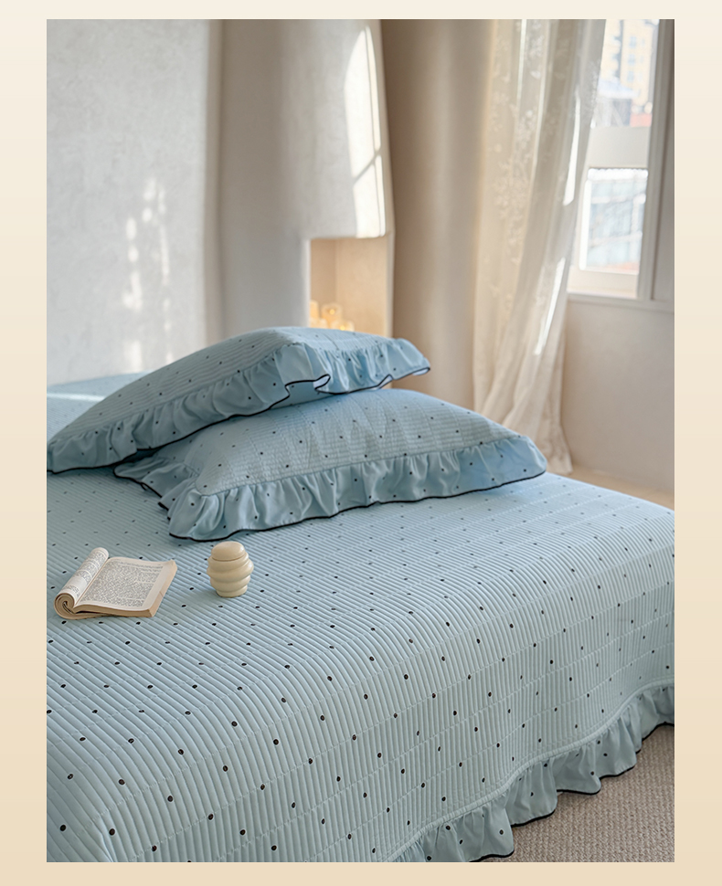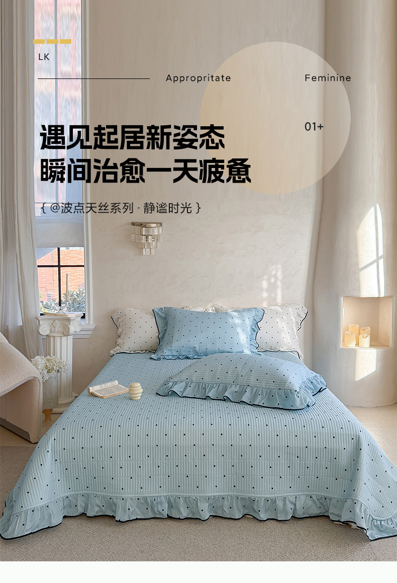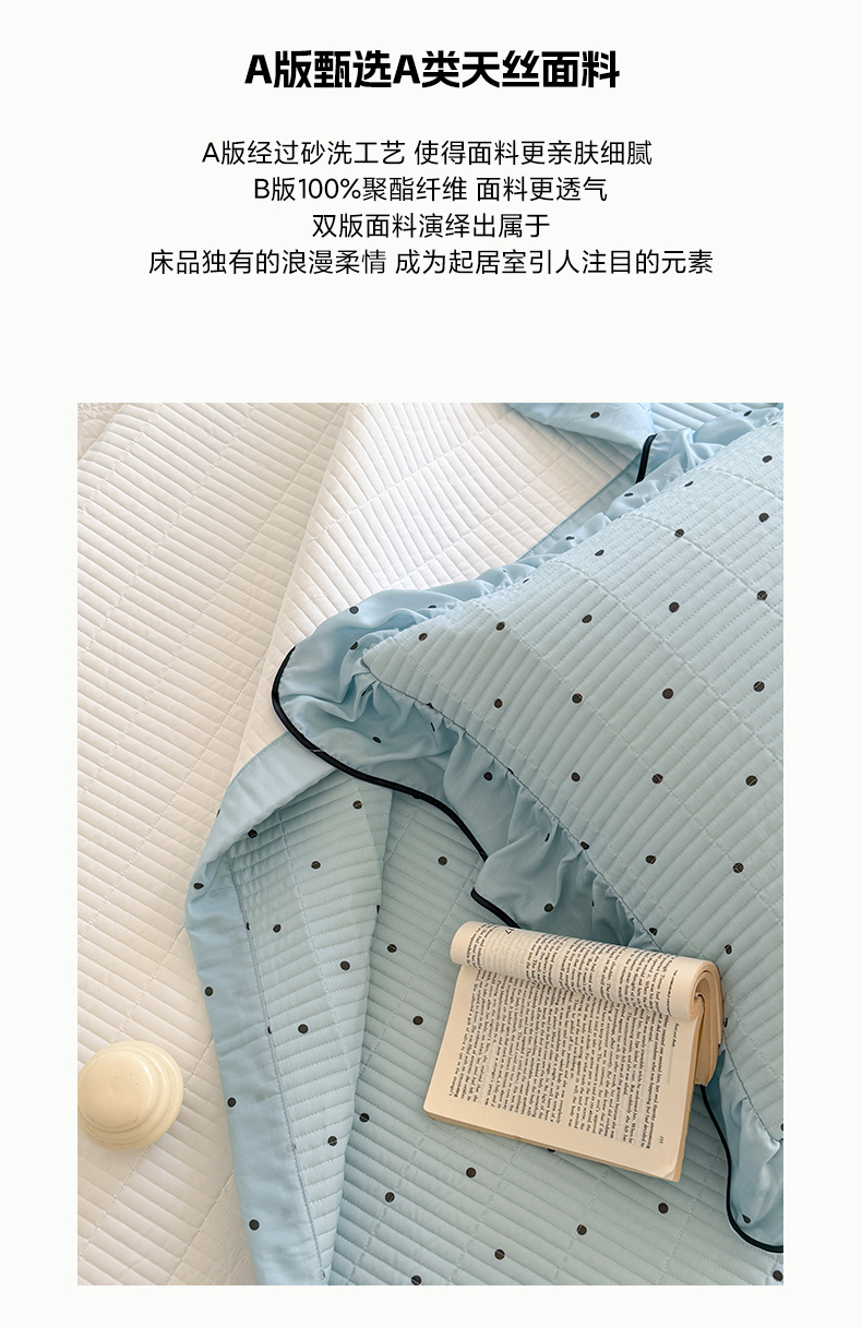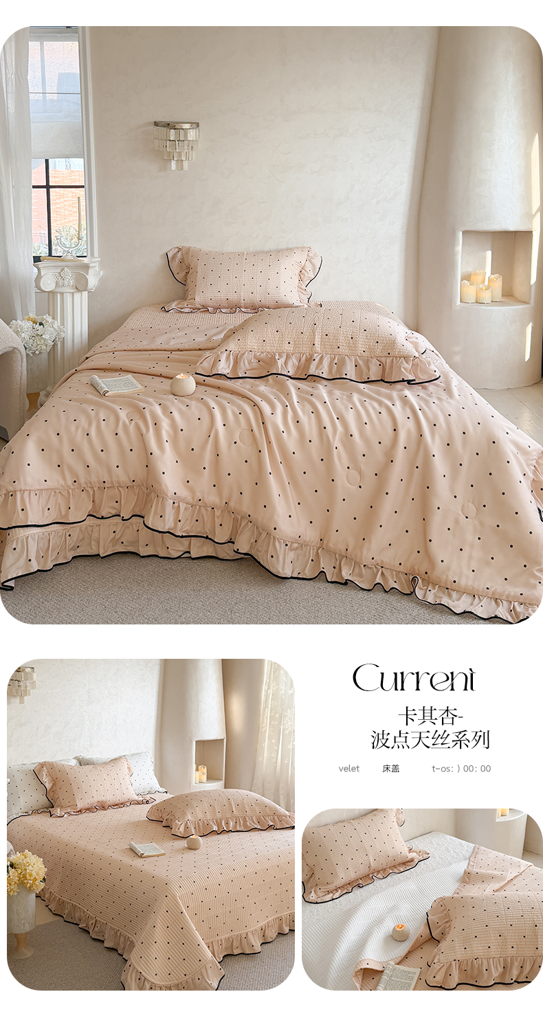 (总)琳可家居 2026新款波点天丝系列花边款100%莱赛尔纤维天丝床盖可机洗A类床盖三件,组合图仅供展示不可下单,香草白,薄荷绿,海洋蓝,卡其杏,奶油粉,清新紫