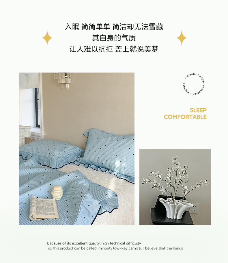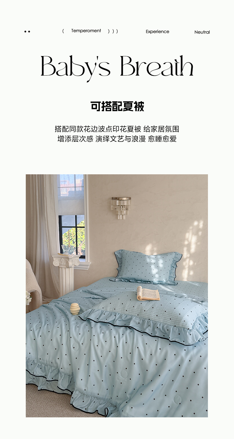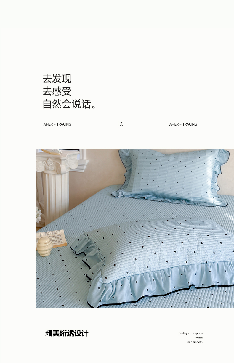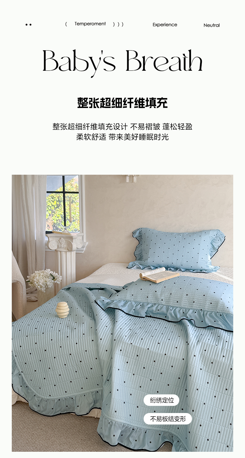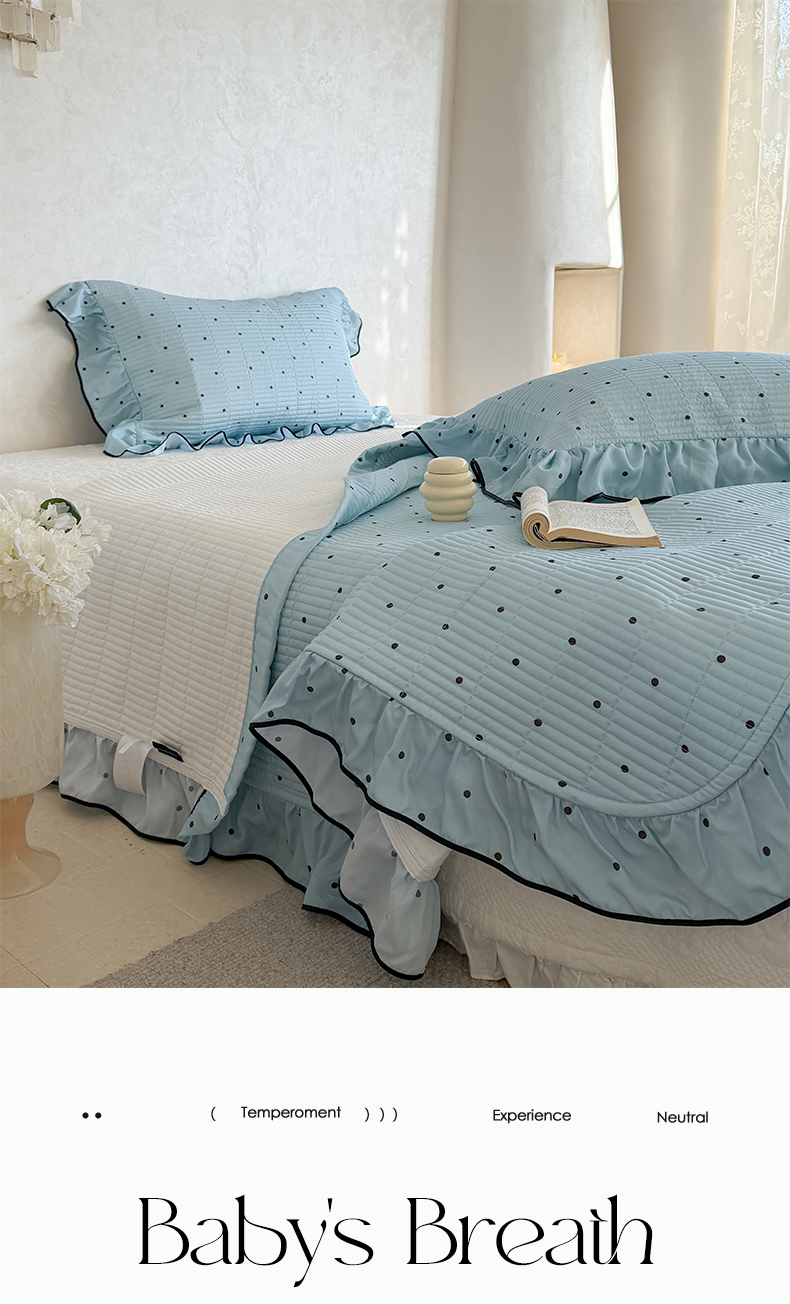 (总)琳可家居 2026新款波点天丝系列花边款100%莱赛尔纤维天丝床盖可机洗A类床盖三件,组合图仅供展示不可下单,香草白,薄荷绿,海洋蓝,卡其杏,奶油粉,清新紫