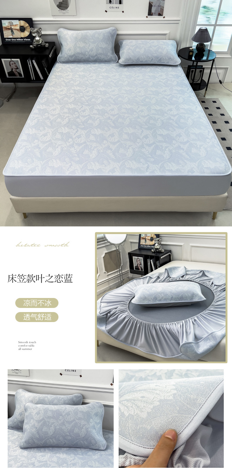 倾慕 2026新款提花凉感凉席床笠款三件套系列 叶之恋蓝床笠款