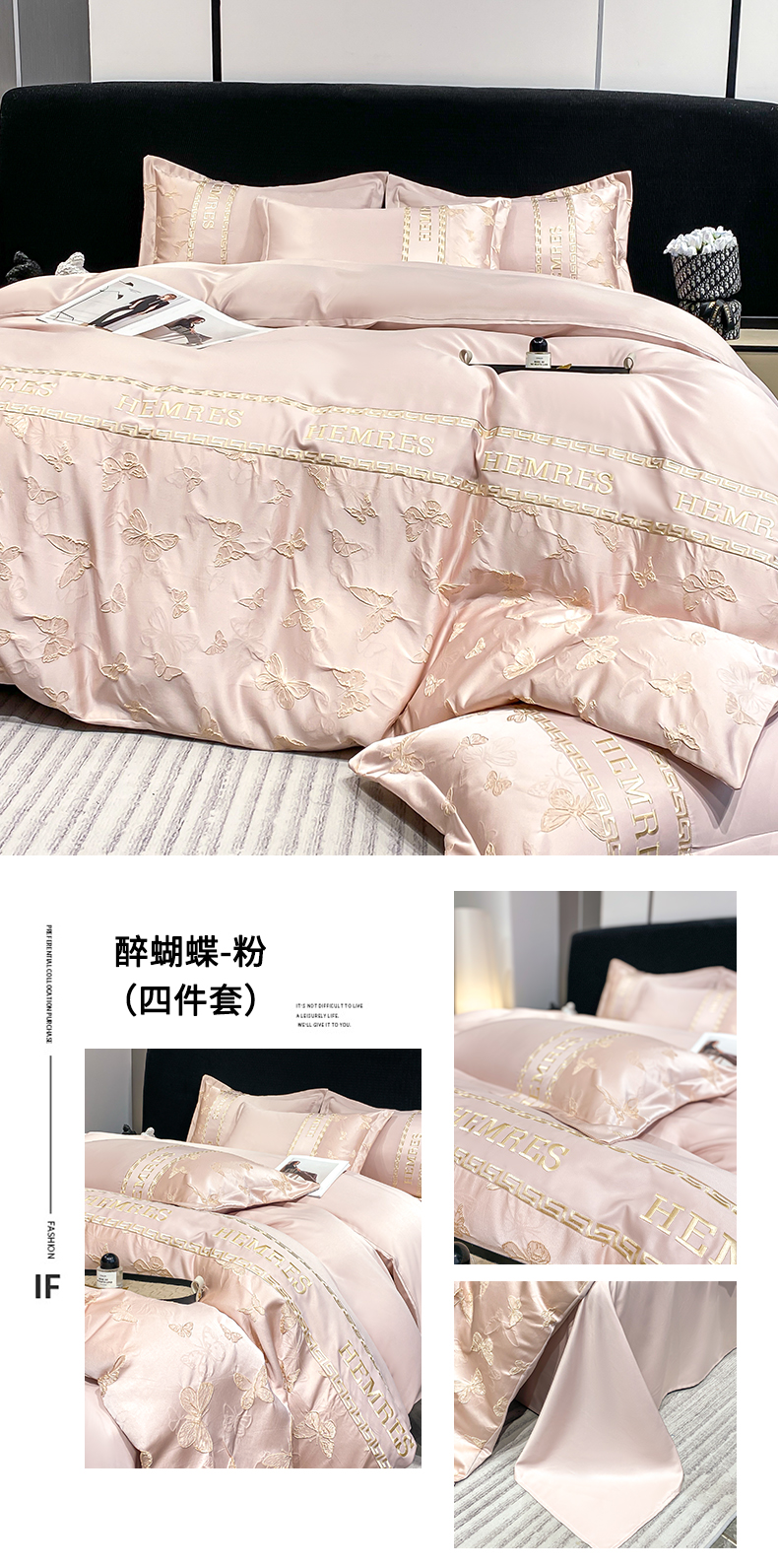 子曰 2026新款浮雕水洗真丝四件套 醉蝴蝶-粉