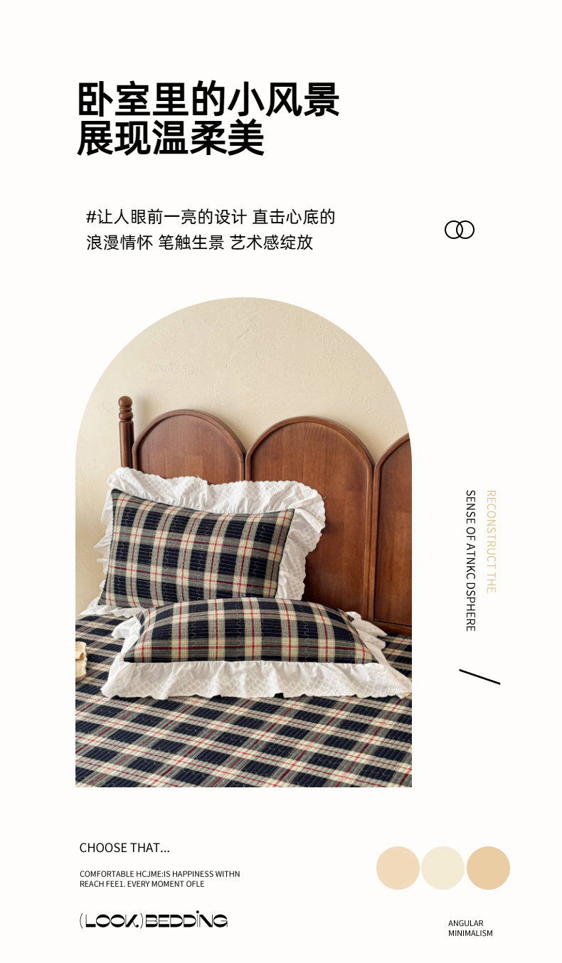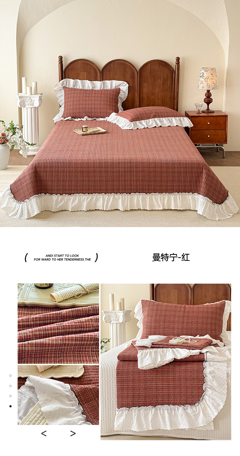 商品名称:沐辰 2026新款A类色织水洗棉花边款床盖 英伦格韵