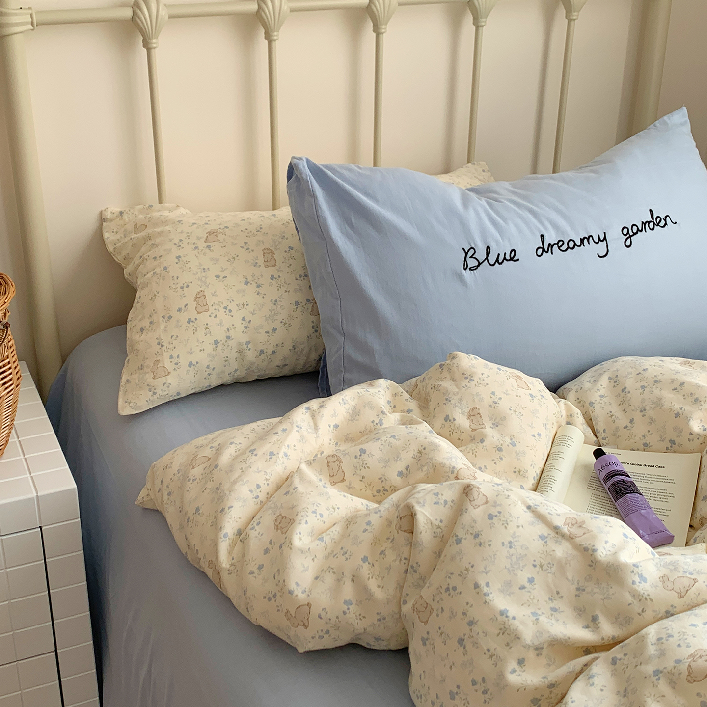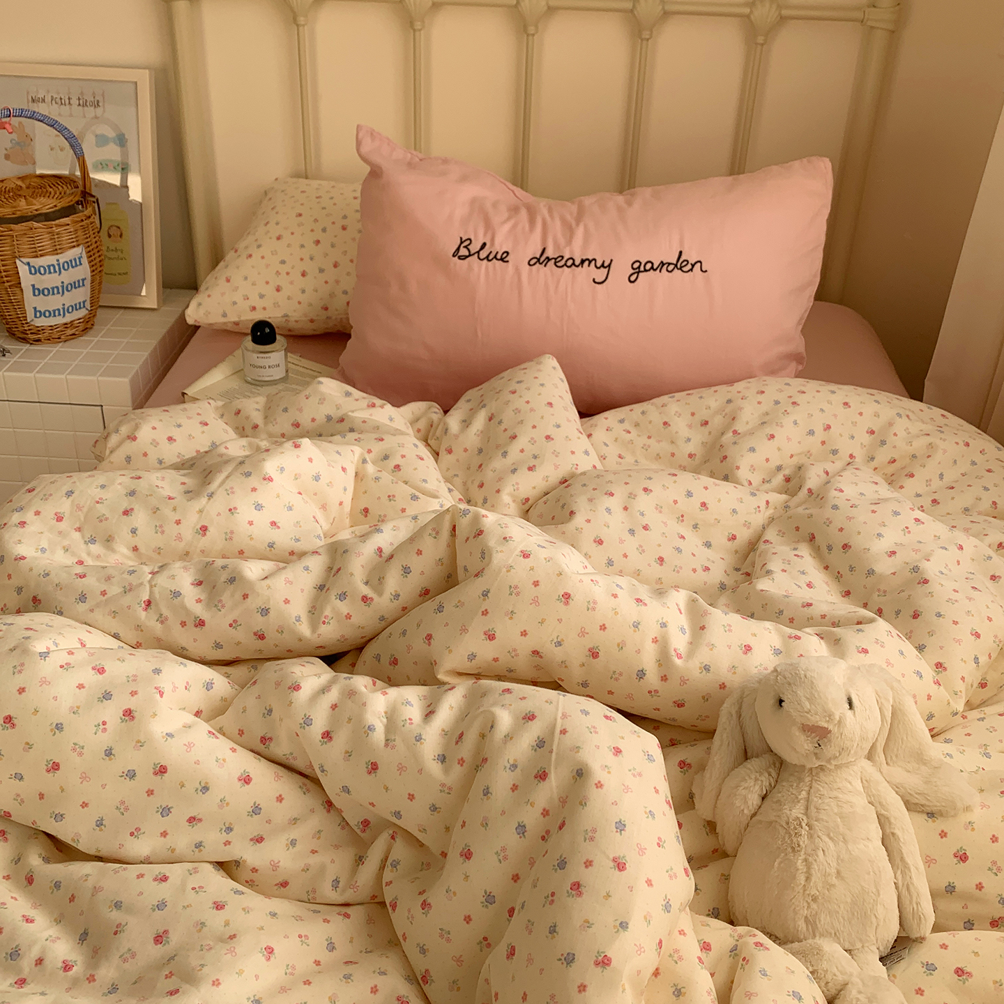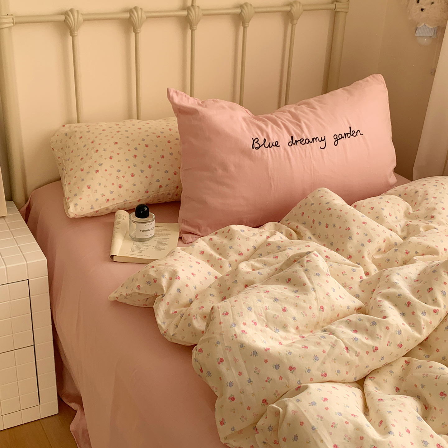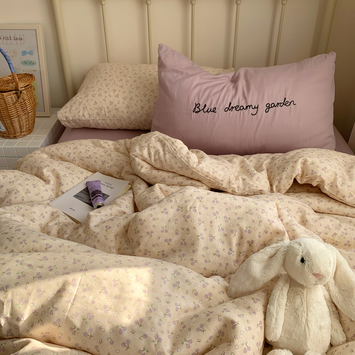 商品名称:桃喜 2026新款全棉双层纱碎花枕套混搭系列四件套 风铃草