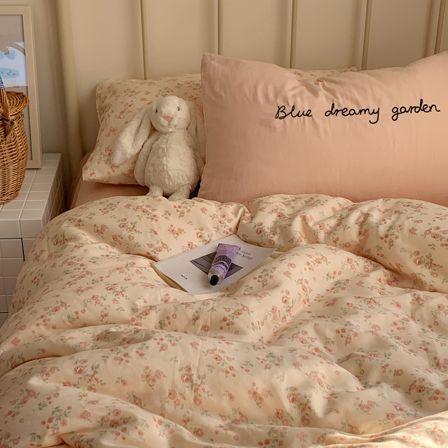 (总)桃喜 2026新款全棉双层纱碎花枕套混搭系列四件套,繁花拾光,风铃草,秘境花园粉,浅雾蔷薇,兔小姐的梦,樱桃仙紫