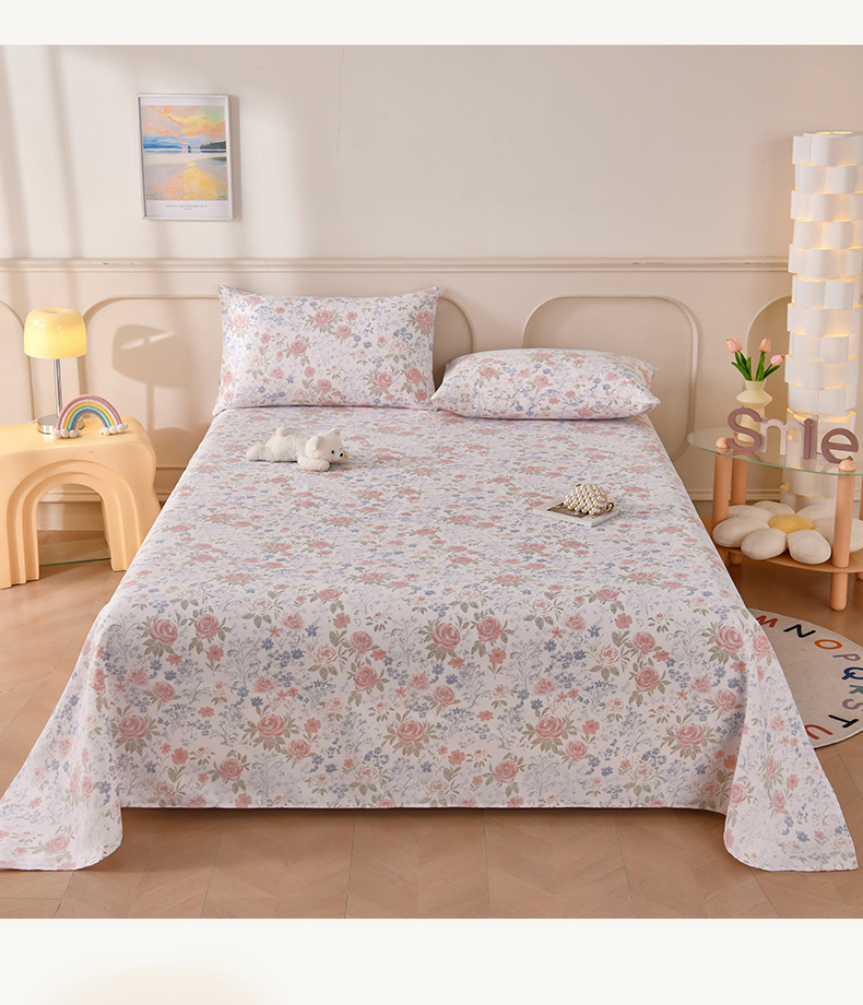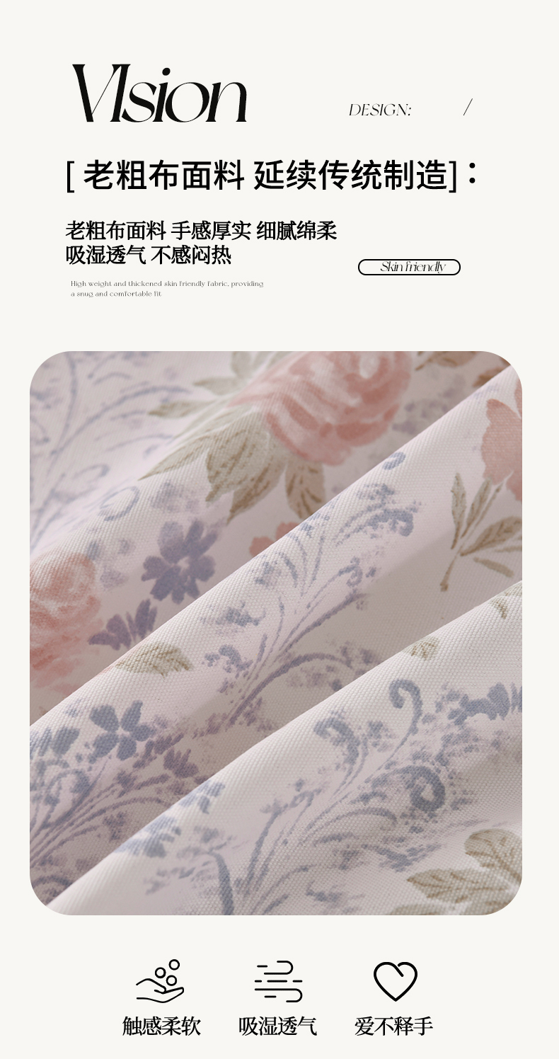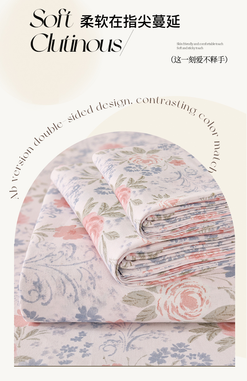 • 91家纺网 家纺一手货源 找家纺 悠米悠家 2026新款工艺款印花老粗布床单单品床单床单单件凉席席子 烟粉花境织