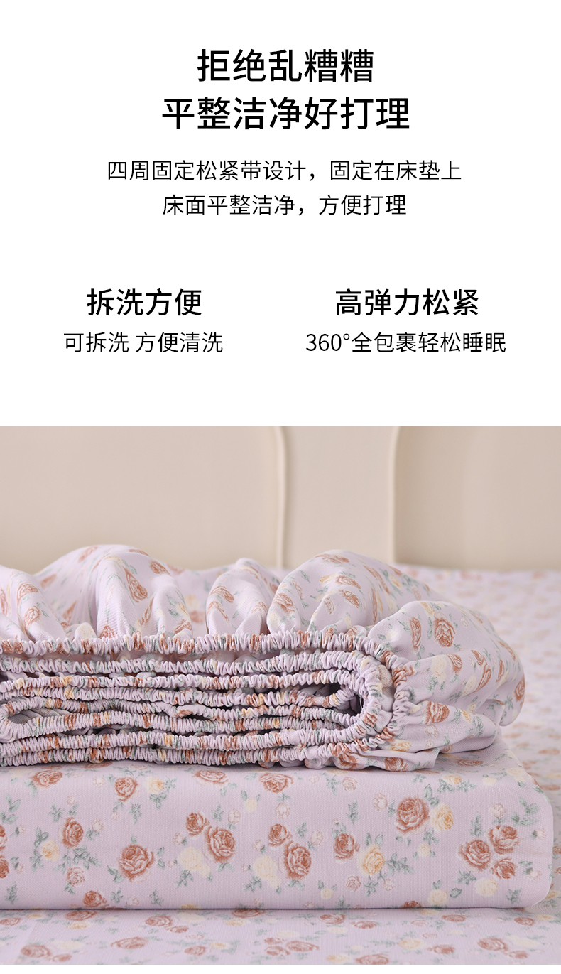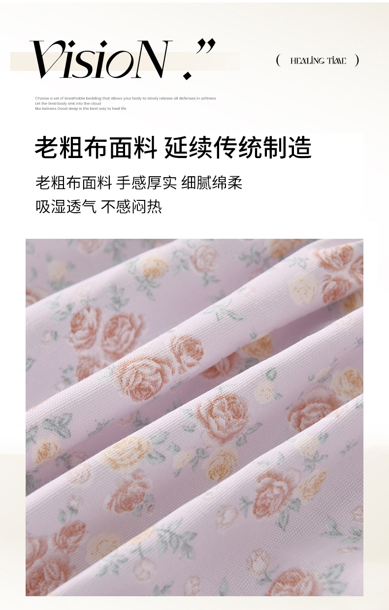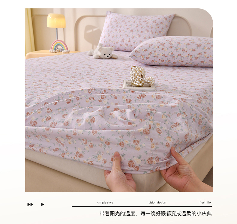 • 91家纺网 家纺一手货源 找家纺 悠米悠家 2026新款工艺款印花老粗布床笠单品床笠床笠单件凉席席子 紫雾玫瑰园