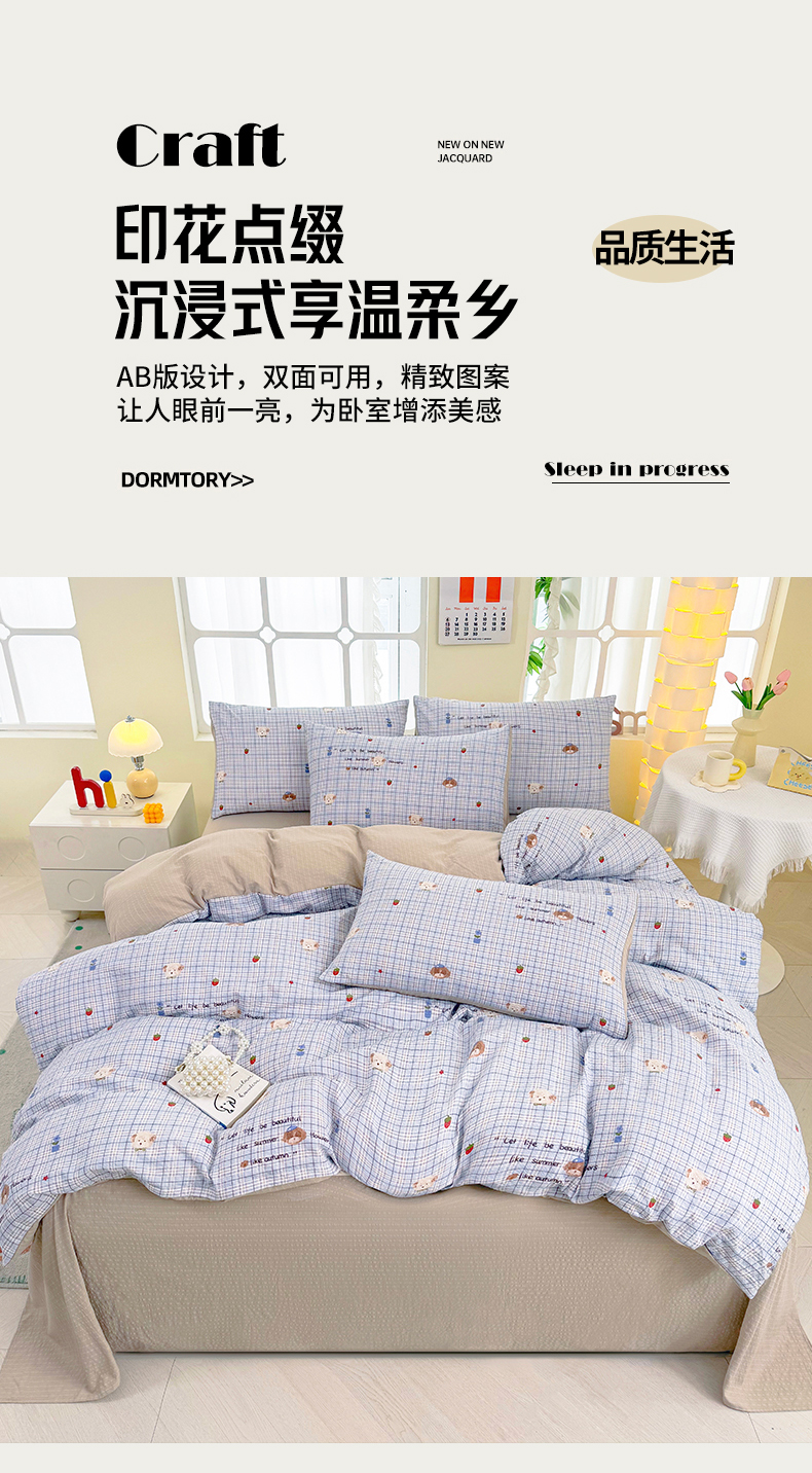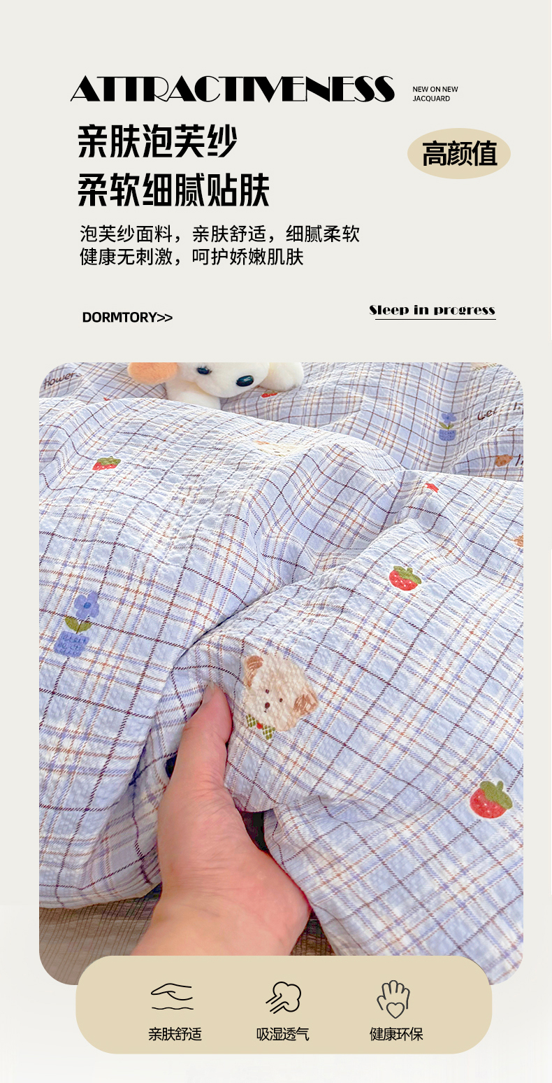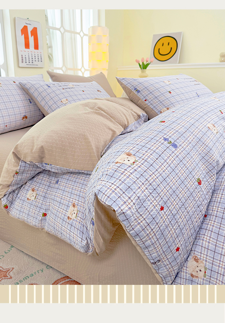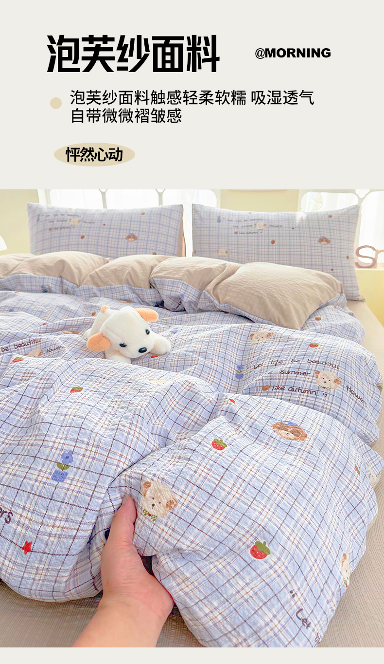 当前位置: 91家纺网 > 商品网购 > 床品套件 > 四件套 > 其它四件套 > 悠米悠家 2026春夏新款高克重A类泡芙纱泡泡皱皱纱四件套 汪仔派对-床单款