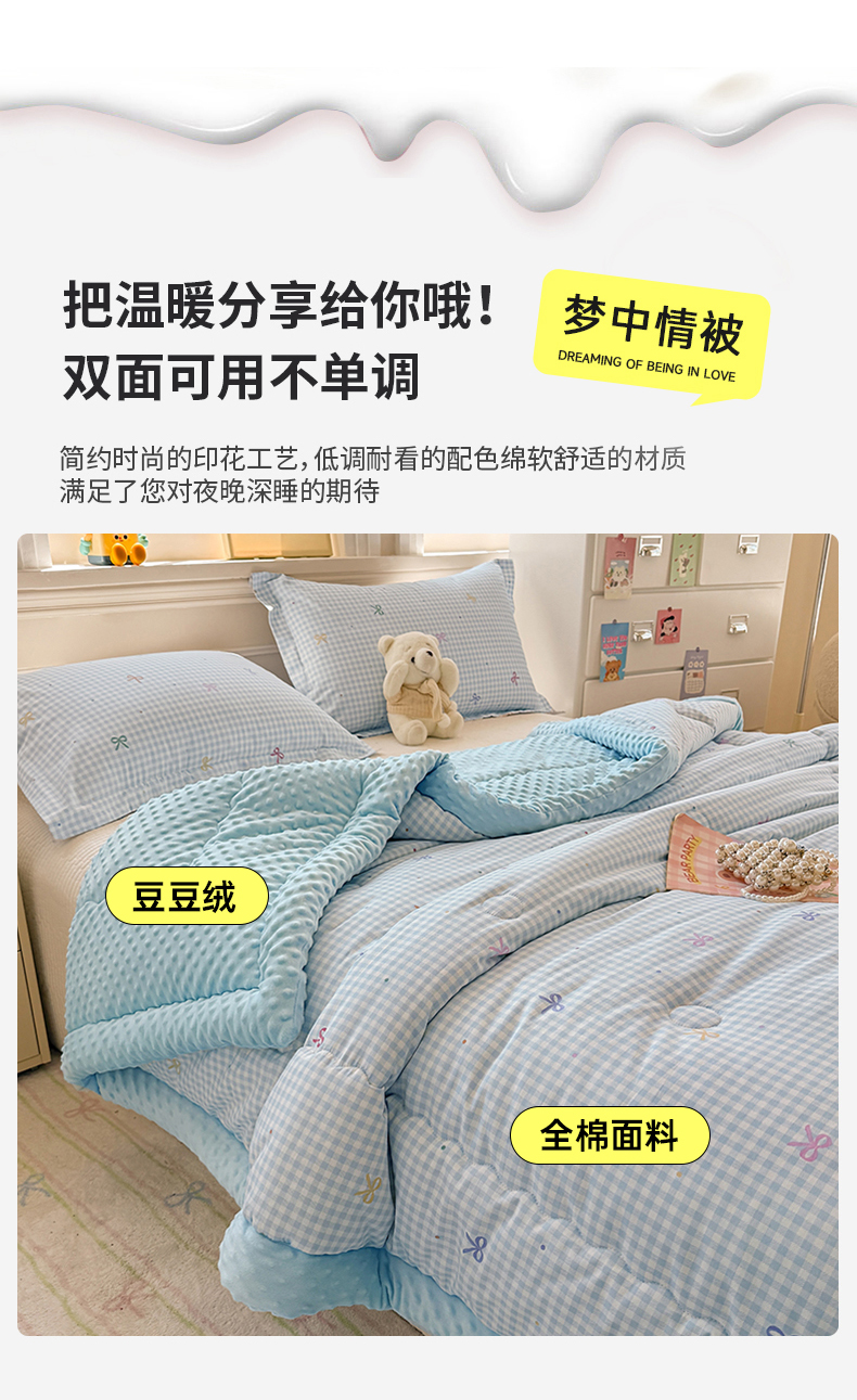 (总)梦依依 2026新款A类全棉豆豆绒大豆被冬被春秋被豆豆被子被芯,安藤丽娜(咖),棒棒糖女孩,草帽兔,草莓狗,草莓园,潮汐月影,春风里-紫,春日礼盒,多彩笑脸,狗狗家族,蝴蝶结灰,花季时光,花森密语(粉),恐龙星球,萝莉兔,沐光(米),轻纱漫舞,秋日玫瑰,瑞莎-蓝,守护爱心,听风-灰,童年游戏(米),夏日恋格-兰,小黑点点-米,熊猫卡皮,熊猫森林,熊仔,萱花,樱桃猫,月光集,云深白茶,樱桃树,费尔岛小熊,可爱星人