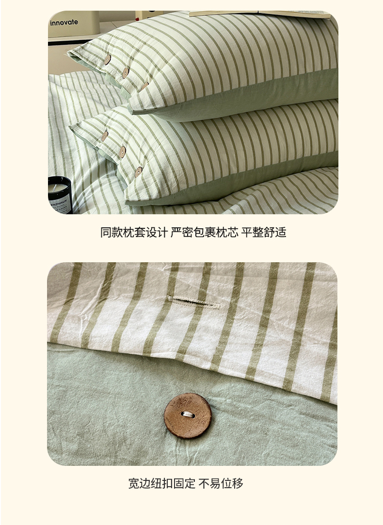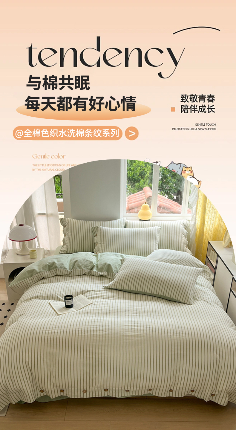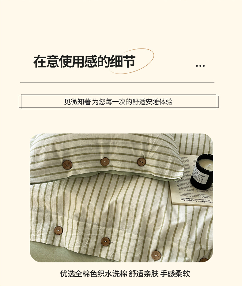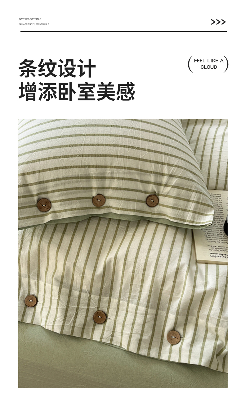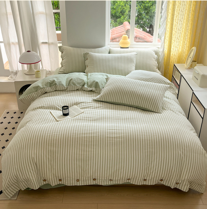 (总)梦依依 2025新款全棉色织水洗棉纽扣款四件套学生三件套全棉纯棉三件套,粉苏条,黑苏条,蓝苏条,绿苏条,米细条,黑细条,灰细条
