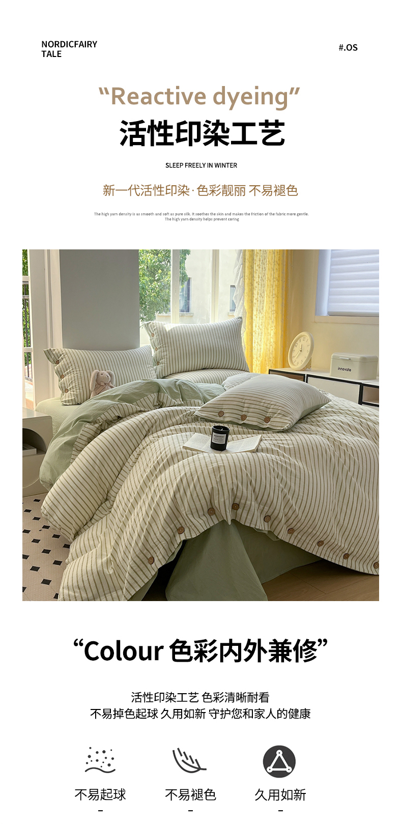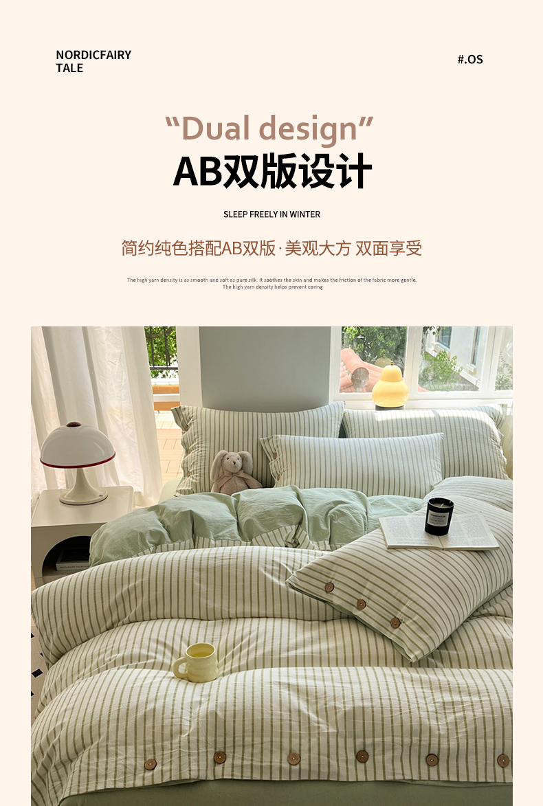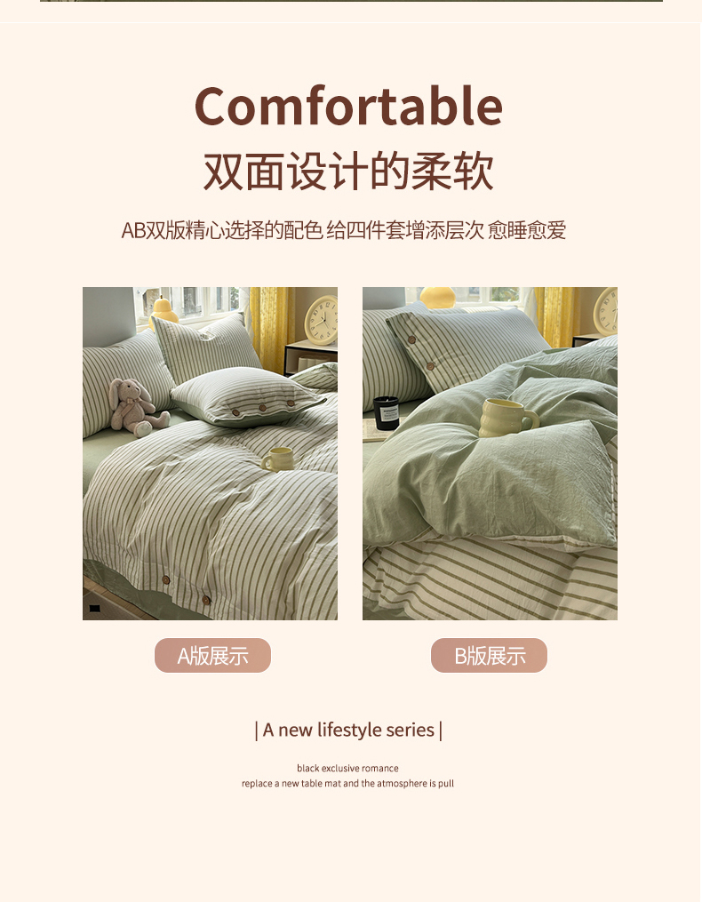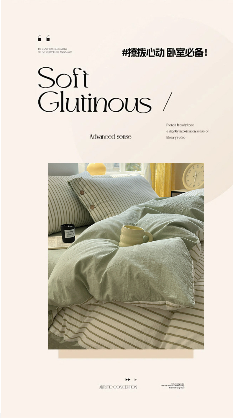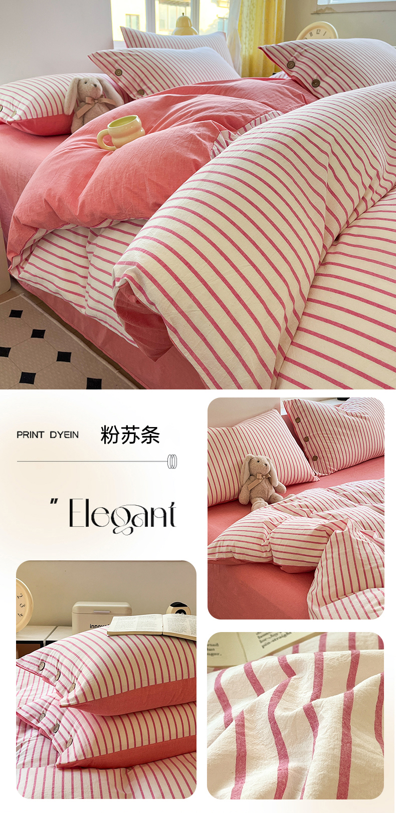 (总)梦依依 2025新款全棉色织水洗棉纽扣款四件套学生三件套全棉纯棉三件套,粉苏条,黑苏条,蓝苏条,绿苏条,米细条,黑细条,灰细条