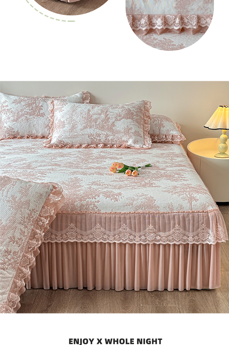 (总)金艾草 2026新款欧式风雕花全棉纯棉花边床盖四件套,欧花-粉,欧花-灰,欧花-浅绿,欧花-紫